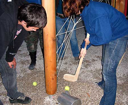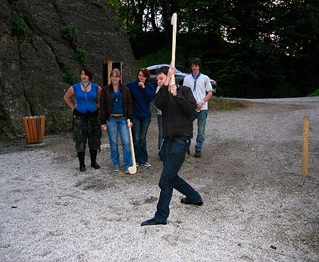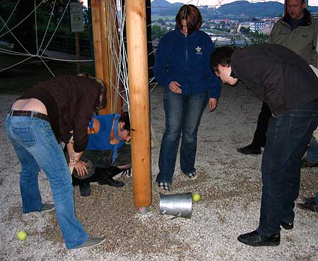 Startend vom neuen Müllner Spielplatz auf der Schanze ging es auf den Mönchsberg (wenn auch nicht sehr weit) mit dem Ziel, einen Tennisball mit einem selbsgebastelten Schläger im transportable Hole zu versenken. Wie schon im Vorjahr war viel Spaß dabei garantiert, auch wenn so manche Regel ganz individuell ausgelegt wurde.