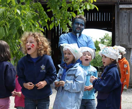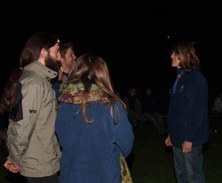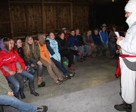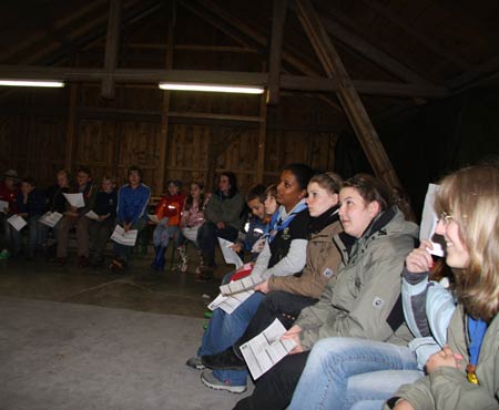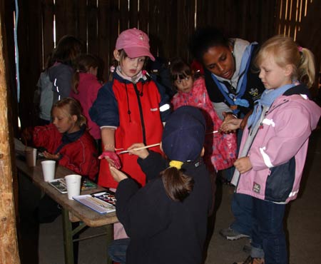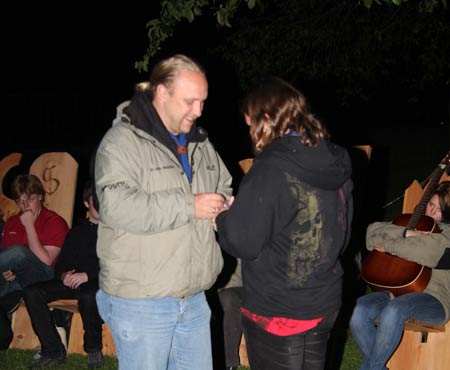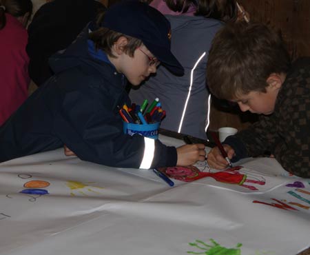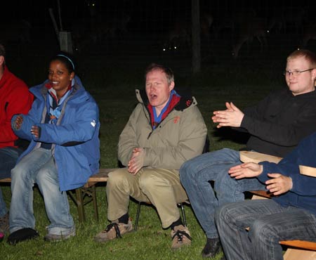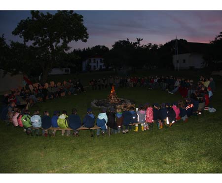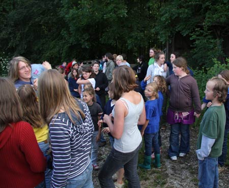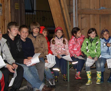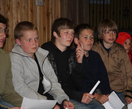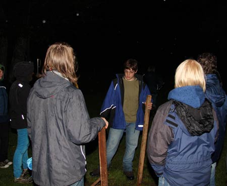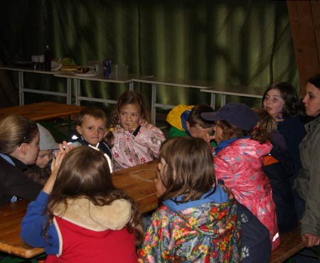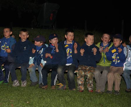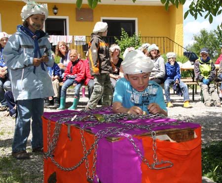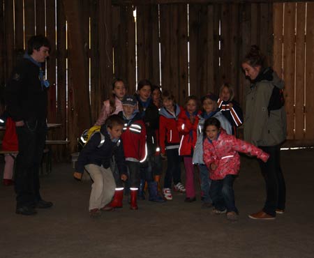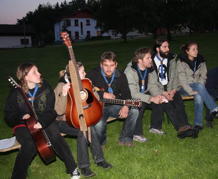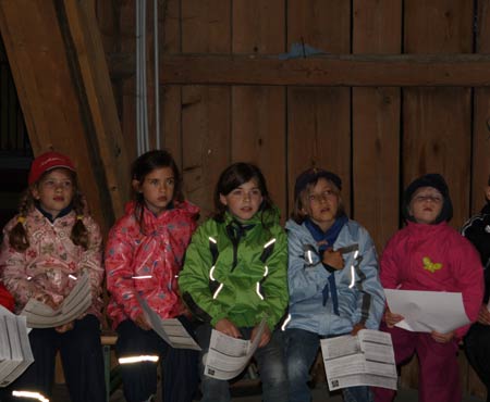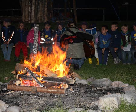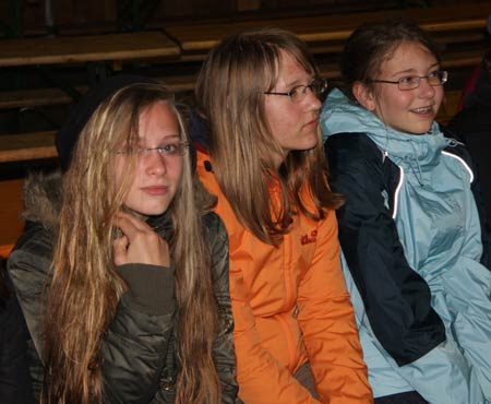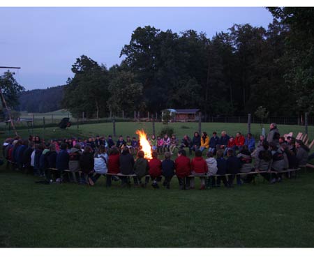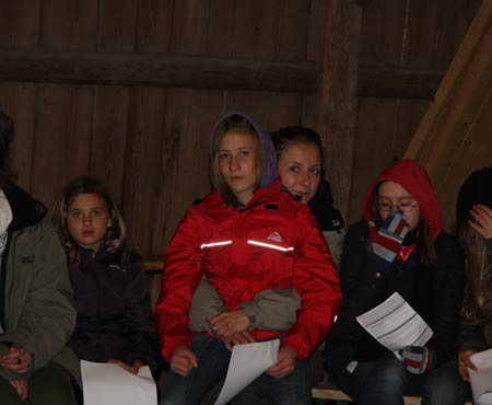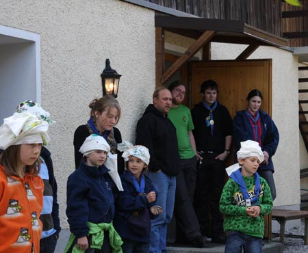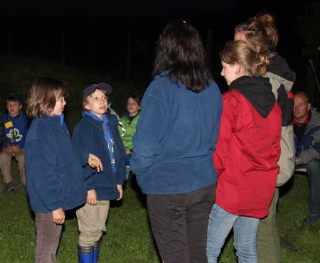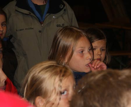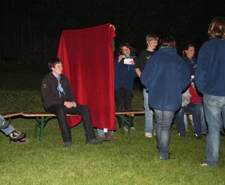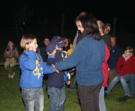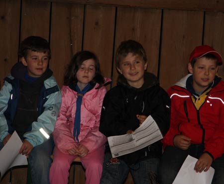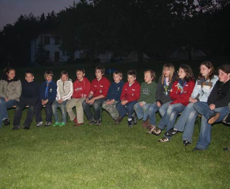 Am Abend versammelten wir uns dann alle zum Lagerfeuer. Lustige Beiträge der verschiedenen Stufen wurden vorgeführt und auch zahlreiche Auszeichnungen verliehen: Die Wichtel Sarah, Vivien und Laura und die Wölflinge Maxi, Johannes und Cem gaben ihr WiWö-Versprechen. Anna-Lena, Katharina, Xandi und Flora bekamen den ersten Stern, und Lisa und Franzi das Spezialabzeichen „Tierfreund“ verliehen.