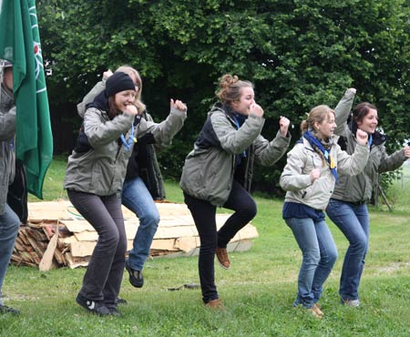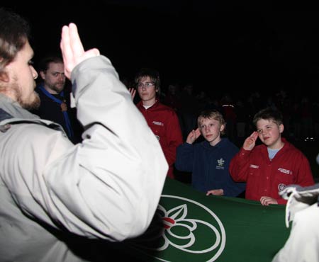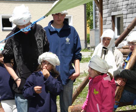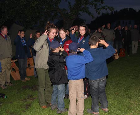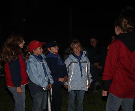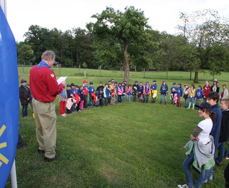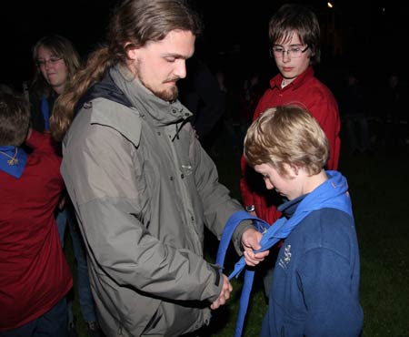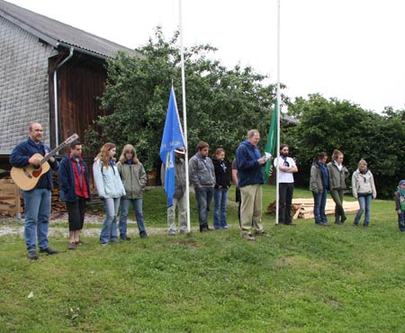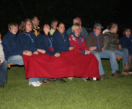Die Späher Martin, Thomas und Nikolaus gaben ihr Pfadfinderversprechen, und wurden so endgültig in die weltweite Gemeinschaft der Pfadfinder aufgenommen. Die Guides Hannah und Alex bekamen das Spezialabzeichen „Teamwork“ verliehen.