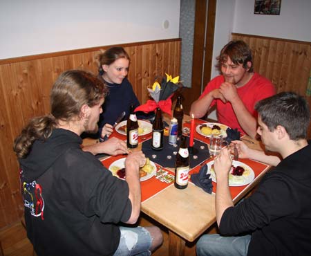 Der Abend stand dann ganz im Zeichen der Verabschiedung von Sophie, Wolly, Berni und Wuck, die sich im Sommer entschlossen haben, sich ganz und gar auf ihre Leitungstätigkeiten zu konzentrieren und somit (leider) ihre „RaRo-Karriere“ beendeten. Wir haben die vier zum Essen und zum gemütlichen Beisammensein am Abend eingeladen, dass dann noch drei von ihnen uns auch am nächsten Tag, war besonders genial.