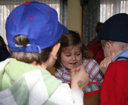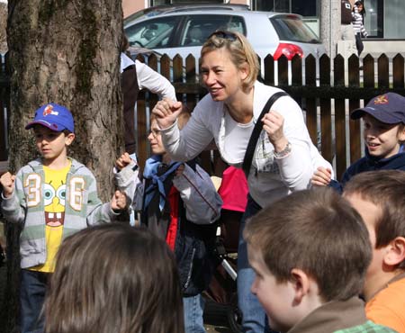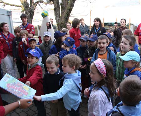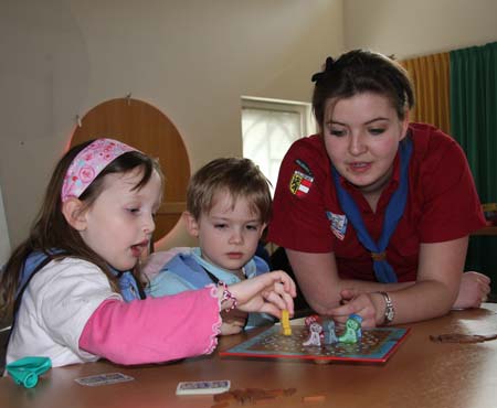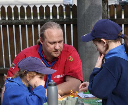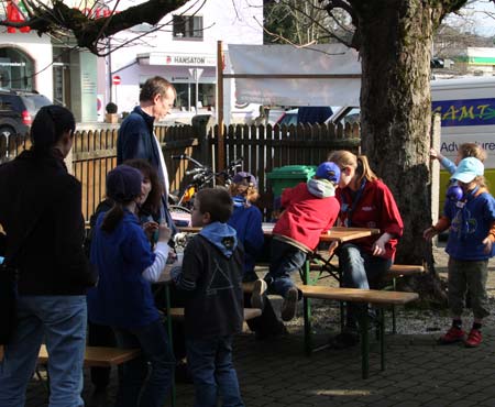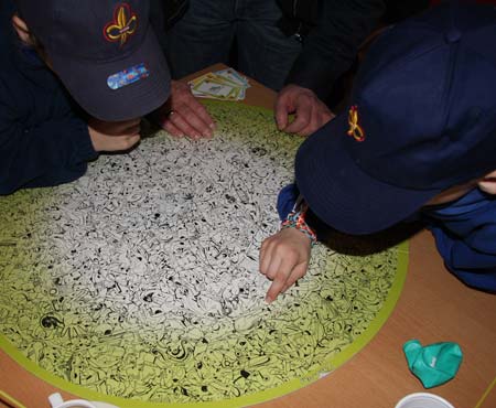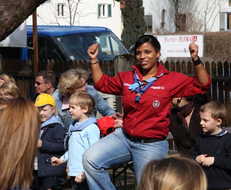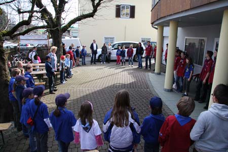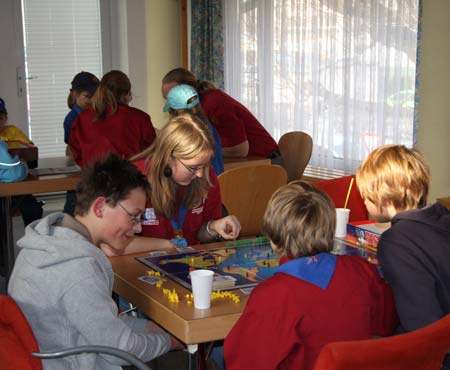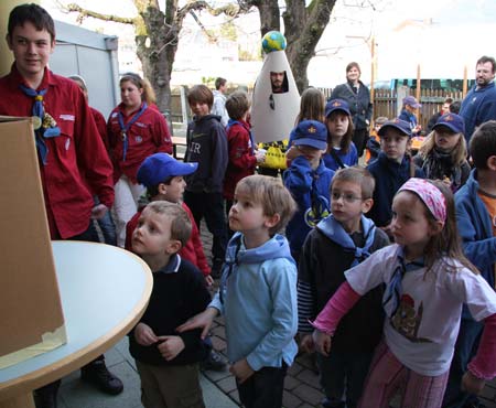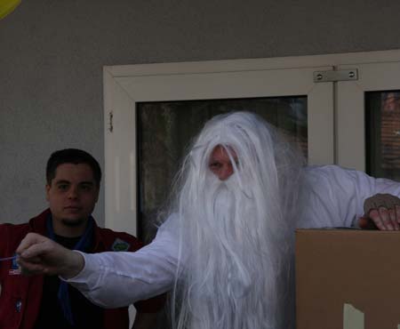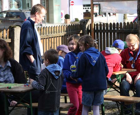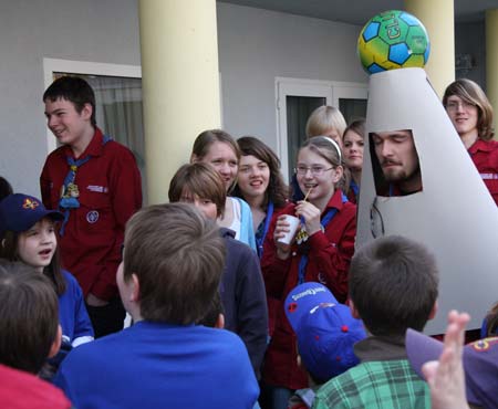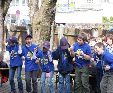 Ein Zauberer, der zwei unserer Leiter verzaubert hatte, die unfair und zu wenig gespielt hatten, spornte uns an möglichst viel und fair zu spielen um die beiden wieder mit der "Magie des Spiels" frei zaubern zu können. So spielten ca. 80 Pfadfis und Eltern munter drauf los und sammelten jede Menge Magie, die in einem Netz aufgefangen wurde. Schon nach zwei Stunden reichte die Magie aus, dass einer der beiden Leiter befreit werden konnte und die Biber bekamen vom Zauberer sogar noch ein Geschenk (natürlich ein Spiel für die Stufe!).
