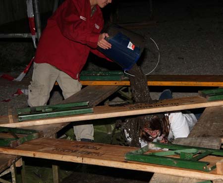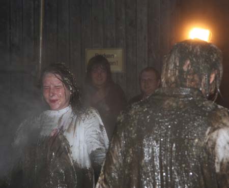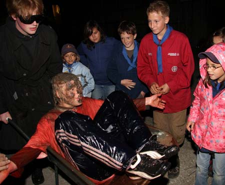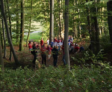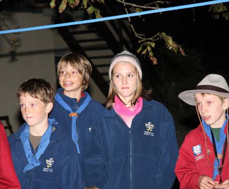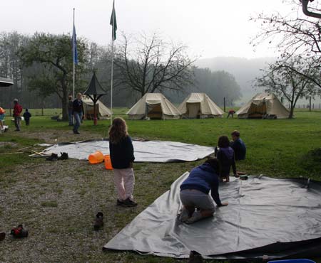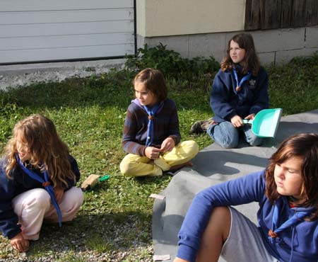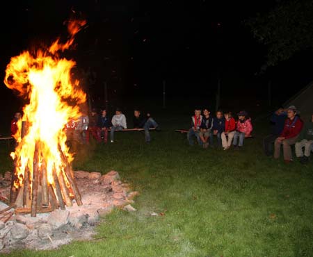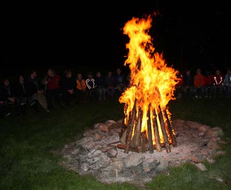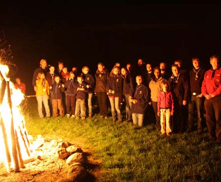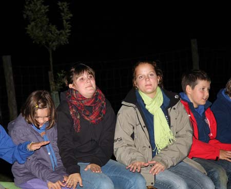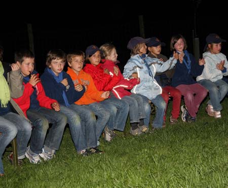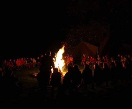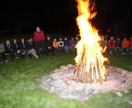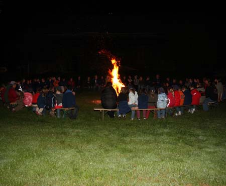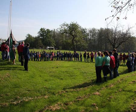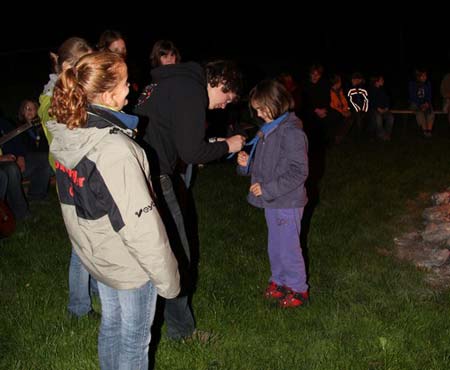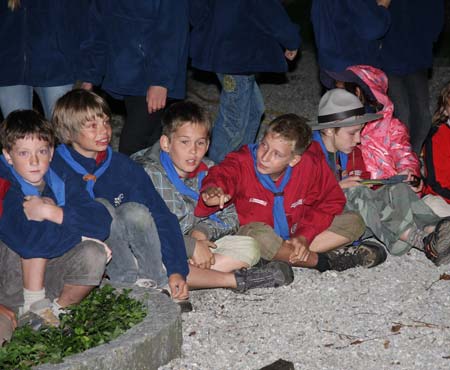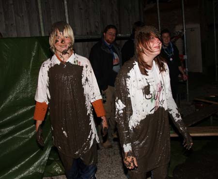 Irgendwo so in der Gegend: Nur gerüchteweise sind dem Korrespondenten schaurige nächtliche Ereignisse zu Ohren gekommen. Es muss ja ziemlich gruselig gewesen sein, irgendwie dürfte auch ein Schweinskopf eine Rolle gespielt haben, ob eine gewisse Selma tatsächlich von Ameisen belästigt wurde ist nicht ganz gesichert. Fakt ist jedenfalls, dass die GuSp-Stufe in dieser unheimlichen Nacht fast alle ihrer bisherigen Guides und einen Späher verlor. Fakt ist aber auch, dass die CaEx-Stufe ebensoviel Neuzugänge feiern konnte.