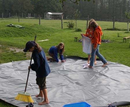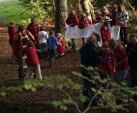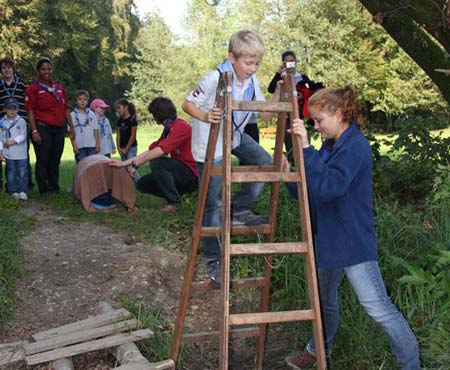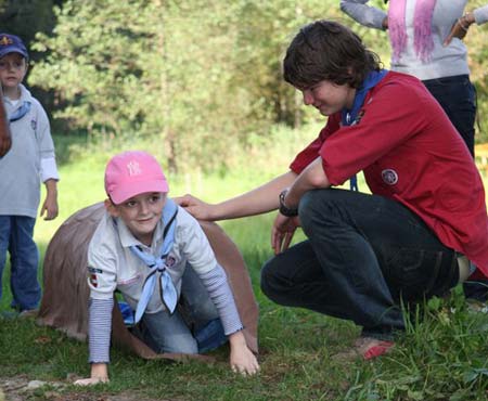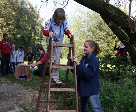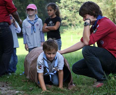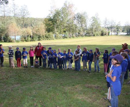 Höllerersee: Erstmals ist es einem Müllner Team gelungen, Biber in junge Wölfe, sogenannte Wölflinge und sogar in Wichtel umzuwandeln. So geschehen auf dem Eröffnungslager der Müllner vom 26. bis 27. September. Bei dieser Veranstaltung, an der trotz einiger Ausfälle durch Grippe, etc. wieder eine sehr erfreulich große Anzahl teilnahm, krochen die besagten Biber durch einen geheimnisvollen Tunnel und querten einen reißenden Fluss - naja oder so - über eine sehr wackelige Leiter und schon war die erste Müllner Biberüberstellung Geschichte. Selbstverständlich wurden die neuen WiWö freudig in ihrer neuen Meute aufgenommen.