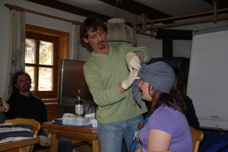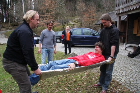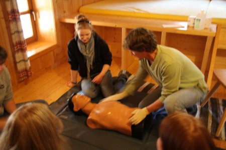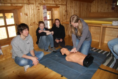 Am Wochenende vom 17. zum 18. April fuhr ein Großteil der Leiter zur Spechtenschmiede um dort von Georg Matl (Hauptamtlicher Sanitäter beim Roten Kreuz Salzburg) einen Intensivkurs in Erster Hilfe zu bekommen.