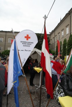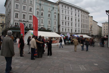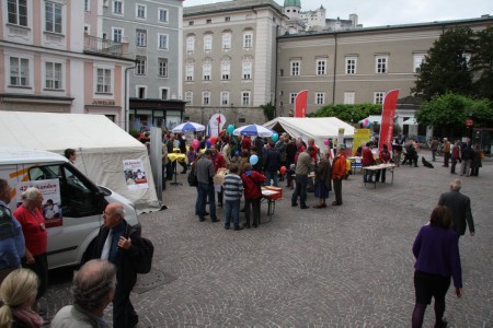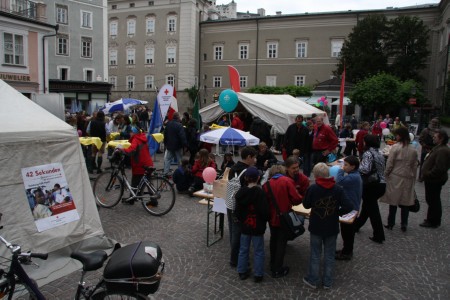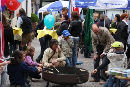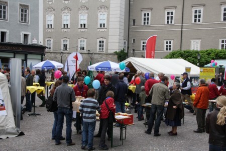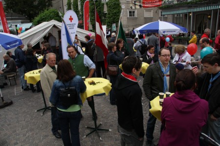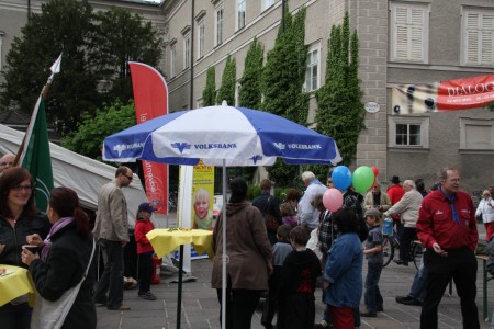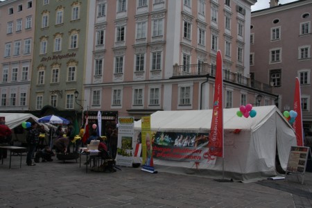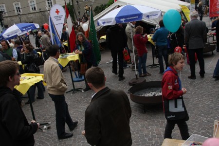 Mit zwei Großzelten, jeder Menge Werbematerial und vielen Spielen im Gepäck bauten wir ein kleines Dorf am Alten Markt.