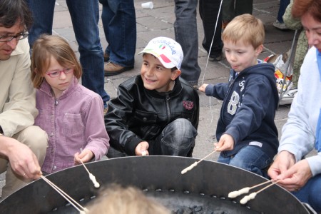 Mit verschiedenen Stationen versuchten wir für die Aktion des Roten Kreuzes für Haiti Spenden zu sammeln. So konnte man an unseren Feuerschalen selbst Steckerlbrot machen, sich am Kuchen- und Brötchenbuffet stärken, die von den RaRo und CaEx liebevoll erstellten Lebkuchenherzen kaufen oder Best-Lock Bausteine (die uns freundlicherweise von Adele Liedel von der Spielzeugschachtel zur Verfügung gestellt wurden) erwerben und verbauen.