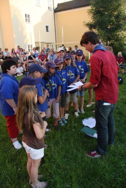 Sieben Biber bekamen ihr Biber-Halstuch, ein Wölfling legte sein Versprechen ab, ein Wichtel bekam den ersten Stern, ein weiteres ein Spezialabzeichen.