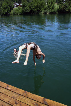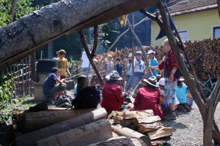 Zugeben müssen wir allerdings, dass einige dieser Ziele scheinbar alles andere als hochgesteckt waren. So fanden sich unter anderem folgende Herausforderungen auf der Agenda: Geschirr abwaschen; Tische abwischen; Duschen und Zähne putzen; Boden wischen; Zuhören und einfache Anweisungen ausführen; die Inbetriebnahme einiger wichtiger Organe wie Augen, Ohren und Gehirn; Kochen nach Rezept; Feuer machen; usw., usf. Wir sind dennoch stolz, berichten zu können, dass einige dieser Dinge gegen Ende des Lagers beinahe ohne Anleitung schon ganz gut funktioniert haben. Obwohl diese Dinge schon relativ viel Zeit und Aufmerksamkeit benötigt haben, ist es uns gelungen, auch ein wenig Programm unterzubringen. So standen neben einem bei bestem Wetter zu bestreitenden zweitages Hike, der in einen angenehmen Badenachmittag mündete, ein interessanter Ausflug ins Keltenmuseum Frög, ein kapitalismuskritischer Rahmengeschichten-Tag, sowie ein herausfordernder Challange-Tag und ein spannendes Reality-Risiko-Spiel am Programm.