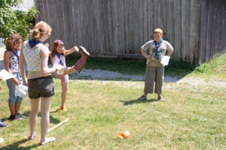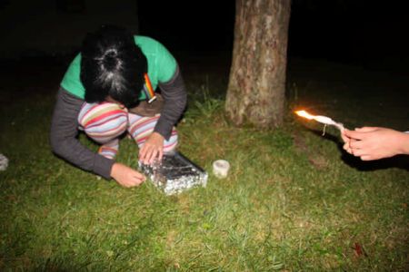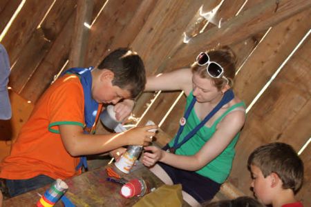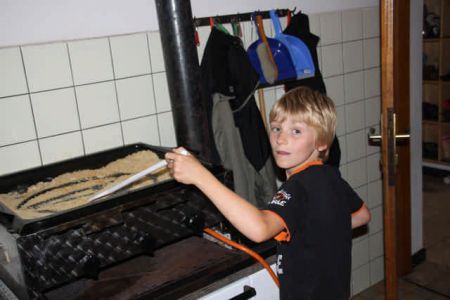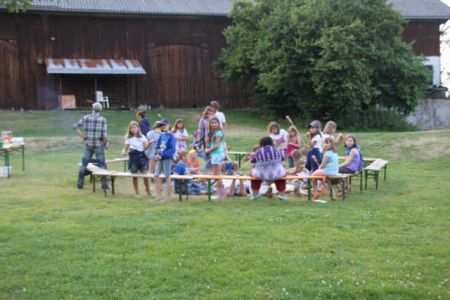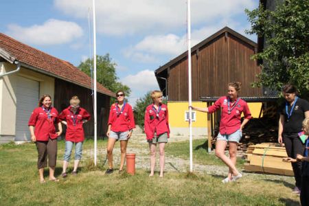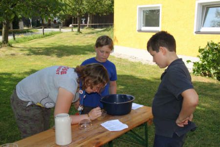 Am vorletzten Lagertag ging es, wie jedes Jahr, ab zum Bauernhof. Wir durften selber Kühe melken und eine selbstgemachte Butter nahm nach diesem Nachmittag Platz in unserem Kühlschrank ein ;-) Wie an jedem letzten Lagerabend gab es auch bei uns das traditionelle „Zusammensitzen“. Leider diesmal wetterbedingt nicht um ein Lagerfeuer aber wir erschufen unser ganz spezielles kleines Lagerfeuer, das wirklich auch sehenswert war! Lukas legte das Versprechen ab und wurde mit dem Dschungelnamen Fenek als neues Tier in der Meute aufgenommen. Markus, Nina G., Nina B., Astrid und Sarah E. bekamen den ersten Stern verliehen. Die Spezis waren an diesem Sommerlager sehr in Mode gekommen. So machten Raphi, Sarah K., Junia und Dajana das Kochabzeichen; Samantha und Nina G. bekamen den Bücherwurm; Katharina und Sarah O. wurden zu zwei Waschbären und zu guter Letzt stellten Astrid und Flora ihre detektivischen Künste unter Beweis.