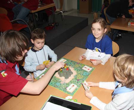 Um viertel nach vier war es dann soweit, die mit Spannung erwartete Endauswertung der Punktestände wurde bekannt gegeben. In jeder Stufe wurden die 3 besten Spieler nominiert und mit Süßigkeiten belohnt. Alle Anderen gingen selbstverständlich auch nicht mit leeren Händen nach Hause und könnten sich über Trostzuckerl freuen. Außerdem bekam jede Stufe gemeinsam ein altersgerechtes Spiel für Ihre Spielesammlung geschenkt, die uns allen sicher noch lustige und spannende Stunden auf den Lagern oder in den Heimstunden bescheren werden.