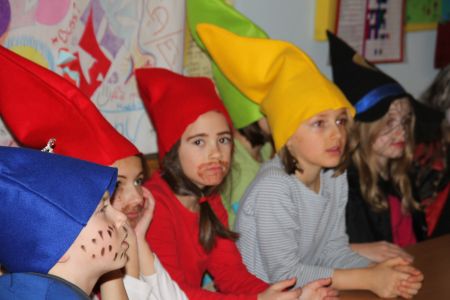 Eine große Versammlung der verschiedensten Wesen, aus klassischen, altertümlichen aber auch modernen Märchen, absolvierten zahlreiche Stationen wie beispielsweise Apfel- beißen, gruseliges Tastkim, Wattewettblasen und natürlich auch Krapfen- verzehren.