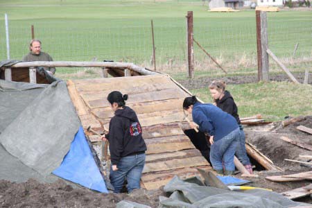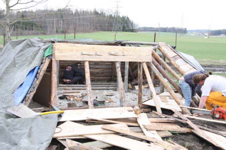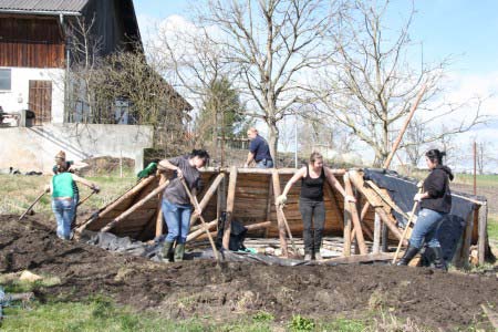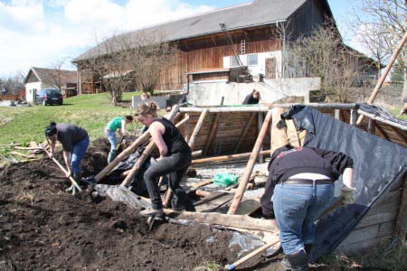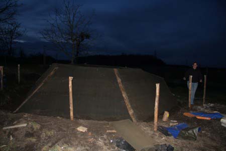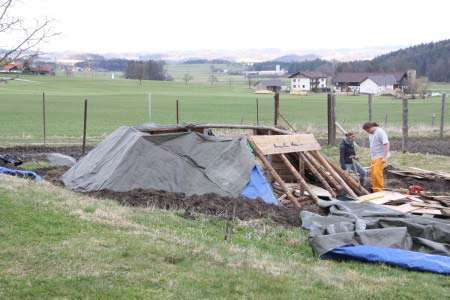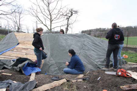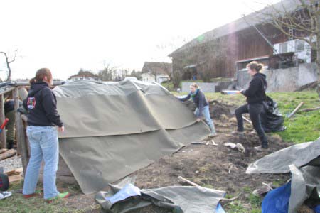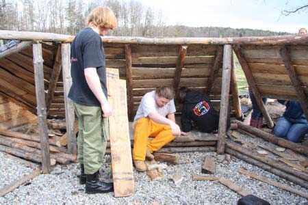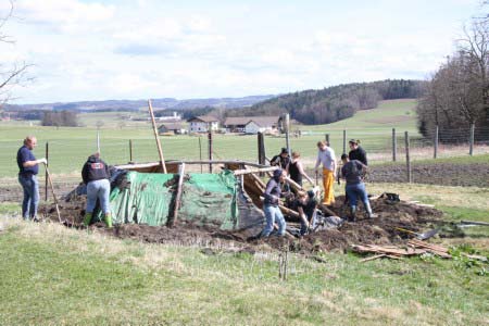 Nach vielen Stunden graben, nach weiteren Stunden nageln und decken, könne wir stolz behaupten, dass "Willi Bonker" (unsere überdachte Lagerfeuerstelle) erfolgreich reanimiert wurde. Frisch eingedeckt mit Plane und Dachpappe strotzt er jetzt hoffentlich lange den äußeren Einflüssen.