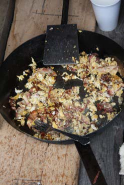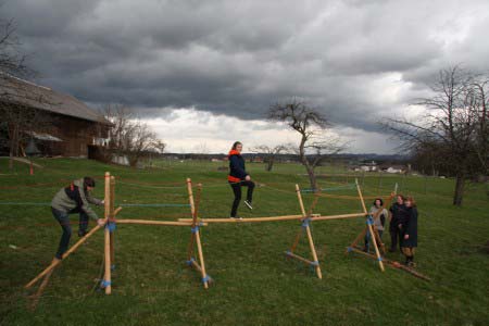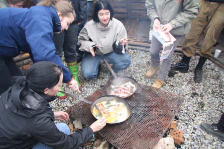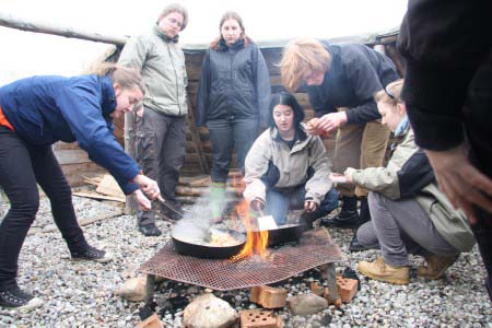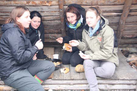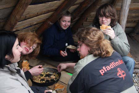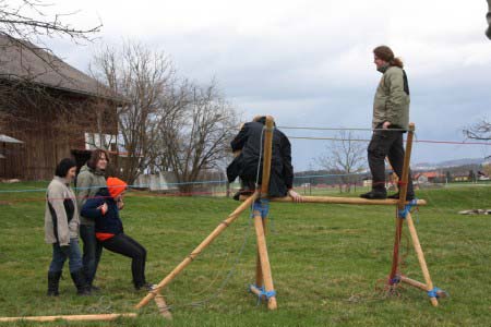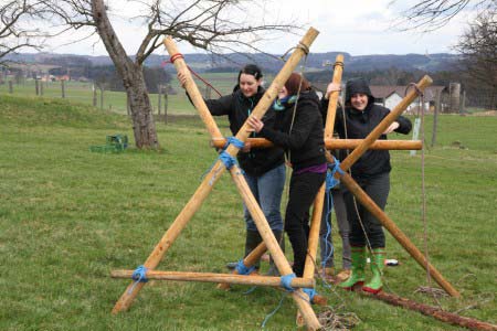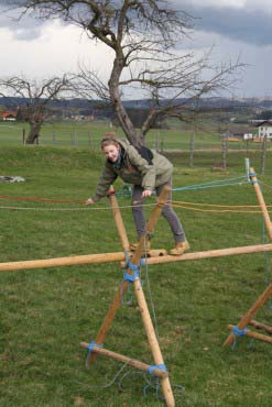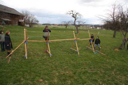 Am Sonntag starteten wir nach erfolgreichem Ausschlafen mit ein paar Teamspielen. So wurde selbst am Lagerfeuer Ham & Eggs gemacht und anschließend eine einfache Brücke gebaut.