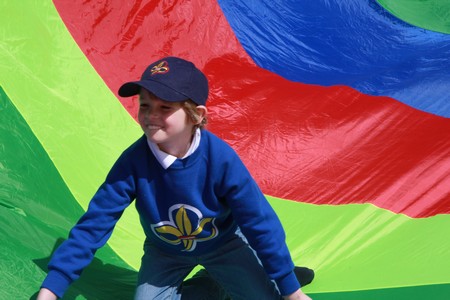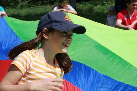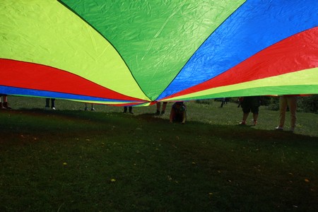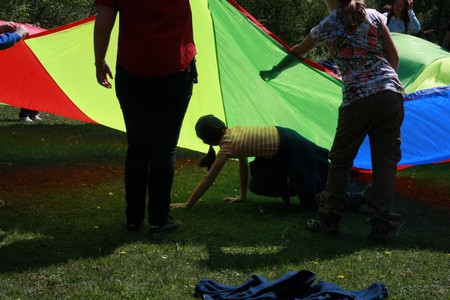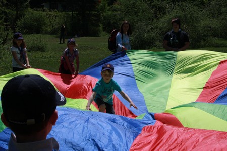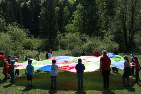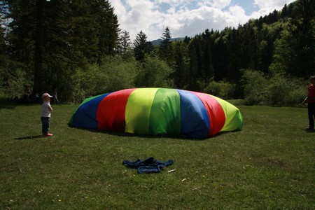 Am Beginn des Tals legten wir eine kleine Pause ein um zusammen zu warten und nutzen diese auch für ein paar Spiele mit dem Fallschirmtuch, das wieder einmal begeisterte.