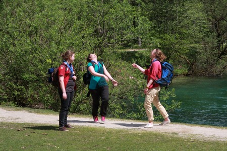 Ende April trafen wir uns beim Bahnhof in Golling um gemeinsam ins Bluntautal zu wandern. Über 60 Pfadfinder, Eltern und Freunde marschierten bei strahlend schönem Wetter (trotzend dem Wetterbericht, der ja nicht so rosig ausschaute) gemütlich Richtung Bluntauseen.