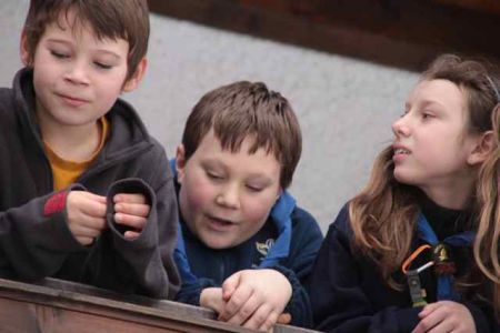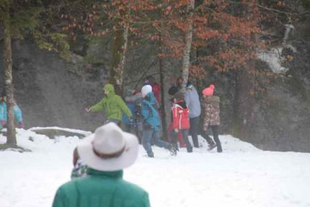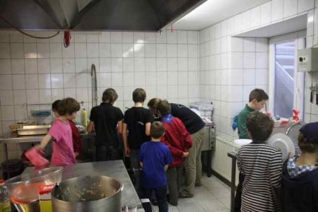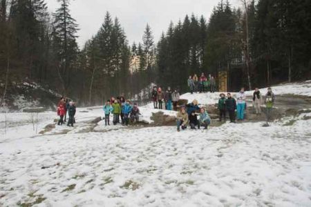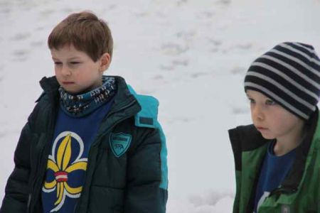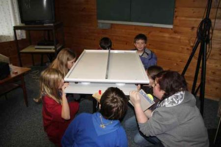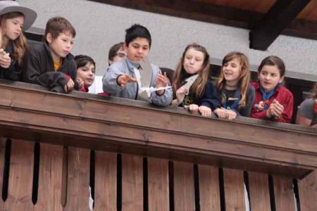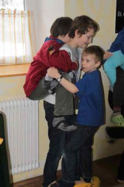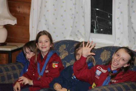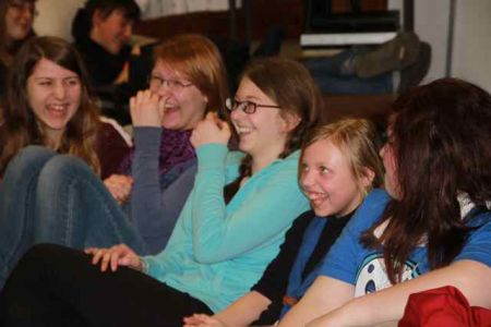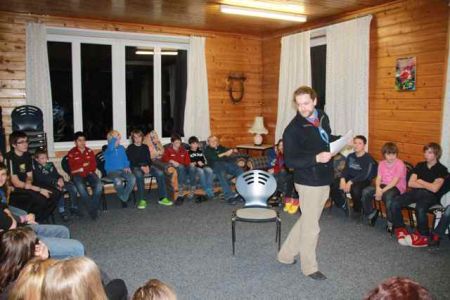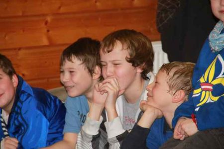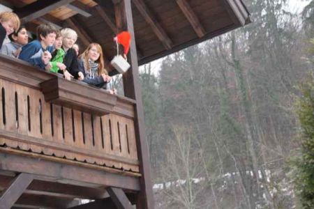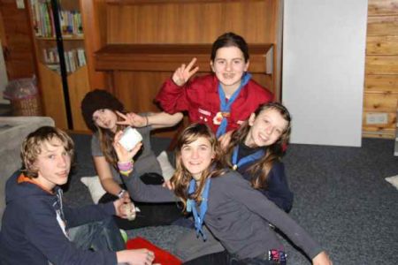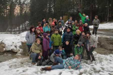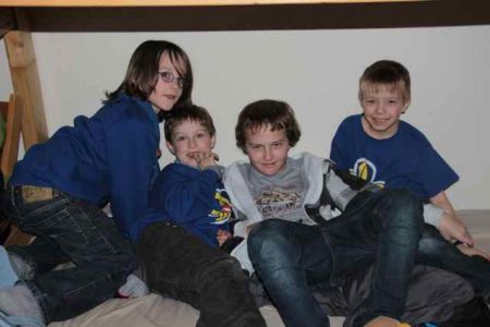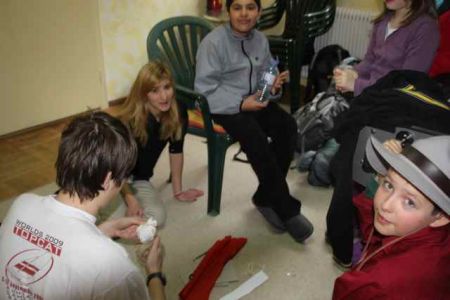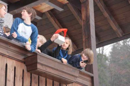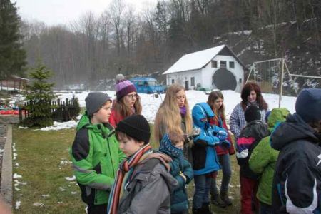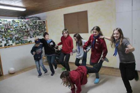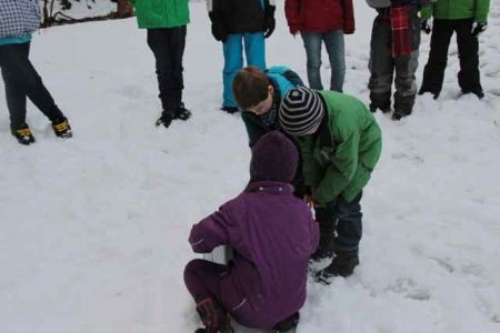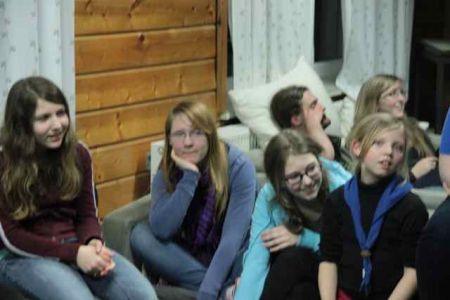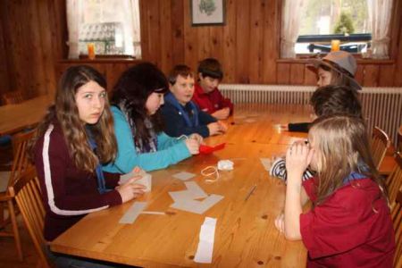 Der Samstag begrüßte uns sehr nass und wir konnten unser geplantes Programm leider nicht durchführen. Das trübte jedoch nicht die Stimmung, da das Ersatzprogramm auch ein Knaller war. Bei einem Stationenlauf im Haus gab es jede Menge lustige Prüfungen zu absolvieren und kreative Werke zu erstellen. Nach dem Essen ging es dann endlich raus: Geheimschriften, nicht von Schneebällen getroffen werden, Kranzlstechen, Angeln, Rätselfragen und eine Marschzahlen-Aufgabe gab es zu bewältigen. Am Abend gab es noch „großes Kino“ mit allen zusammen. Mit einem Beamer schauten wir uns Ice-Age 3 an. Danach ging es ab ins Bett.