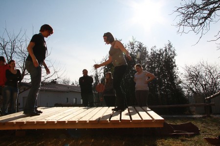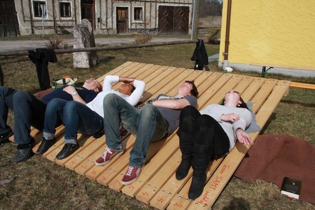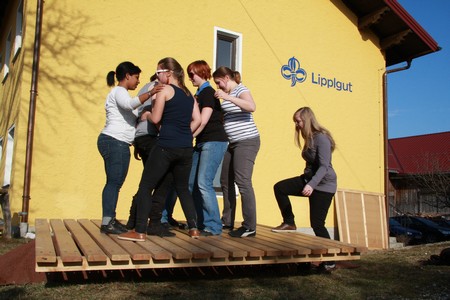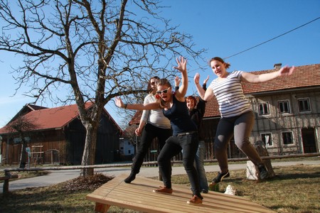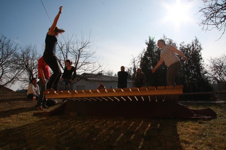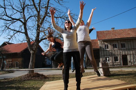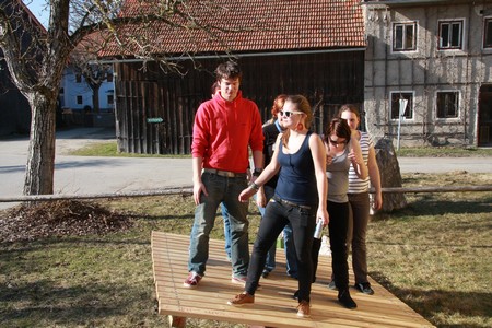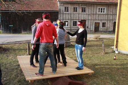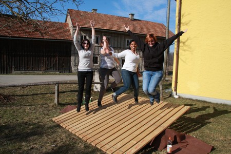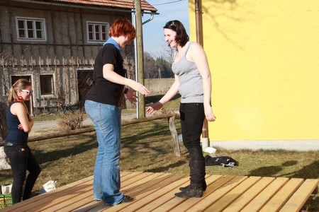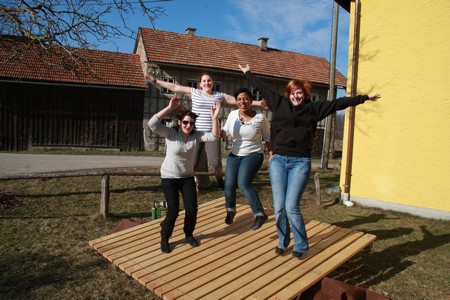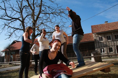 Besonders interessant und auch lustig war ein Team-Spiel: "die Wippe". Vor dem (schon) nach Hause fahren testeten wir diese in allen erdenklichen Varianten und konnten zum Teil auch wichtige Tricks für die Heimstundenpraxis mitnehmen.