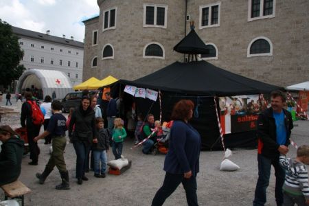 Am 28. Mai war es dann so weit: verschiedene Organisationen wie Jungfeuerwehr, Jugendrotkreuz, verschiedene kirchliche und parteiliche Jugendgruppen sowie natürlich die Pfadfinder zeigten am Residenzplatz ihre verschiedenen Kompetenzen. Unsere Gruppe baute an diesem Tag eine Jurte auf und führte ein Kasperltheater darin auf, das viele Zuschauer begeisterte. Leider war die Besucher-Frequenz der ganzen Veranstaltung nicht sonderlich groß.