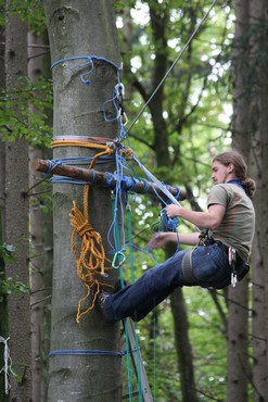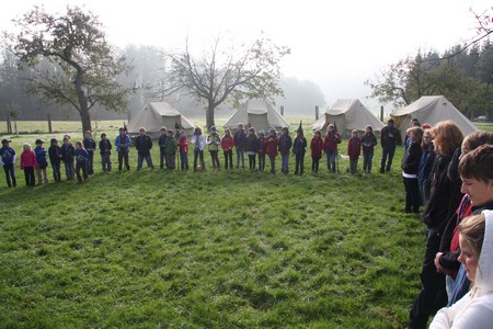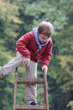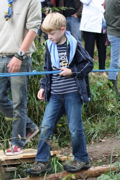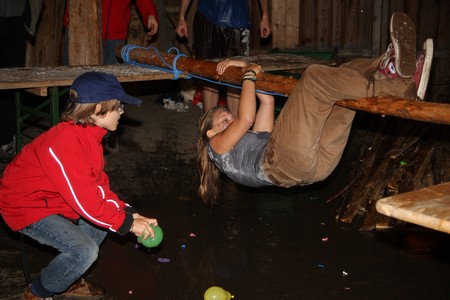 Rekordverdächtig war das Tempo, mit dem die WiWö zu GuSp wurden. Eine steile Seilrutsche brachte sie durch Gestrüpp und Gemüse und über einen tiefen Wassergraben mit Fullspeed in die neue Stufe. Auch hier winkte eine erste Nacht und zwar die erste in einem Pfadfinderzelt. Eine Blitzumfrage nach dieser Nacht ergab, dass sie zwar voll super war, die Heizung allerdings nicht richtig eingestellt war. Angeblich soll es etwas kühl gewesen sein, was allerdings der Schreiber dieser Zeilen angesichts von Plusgraden nicht ganz verstanden hat.