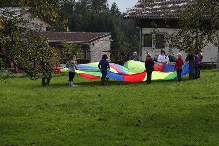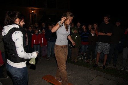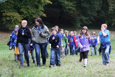 Bei den Bibern mussten schwierige Hindernisse – ein Tunnel, eine schwindlige Leiter und ein wackliger Balken über einen Bach – überwunden werden, um von Bibertown, nach WiWötown zu gelangen und von Balu empfangen zu werden. (Dieser hatte übrigens eigenartig weiße Beine). Selbst schwere grippale Infekte konnten die unerschrockenen Jungwiwö nicht davon abhalten, an diesem Happening teilzunehmen. Für einige gab es dann im Anschluss die erste echte Pfadfinderlagernacht.