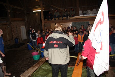 Die Nacht selbst haben die GuSp benötigt, um CaEx zu werden. Sie wurden mit verbundenen Augen und in ihrer Bewegungsfreiheit ziemlich eingeschränkt in den tiefen Wald geführt, wo sie von gar schrecklichen Gestalten erschreckt und in ihre neue Stufe gescheucht wurden. Für einige waren die nächtlichen Plagen dann noch gar nicht vorbei, denn unbekannte Täter haben sie nächtlings, heimlich und tückisch durch unbefugten Zeltabbau obdachlos gemacht.