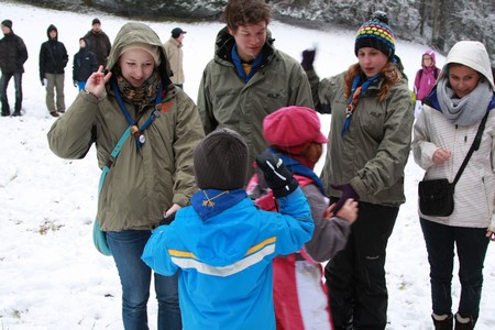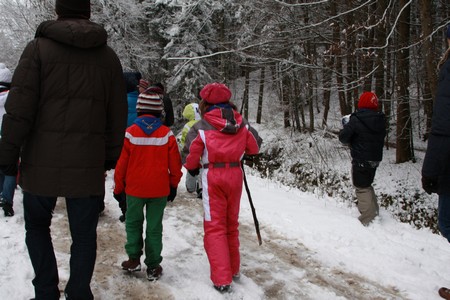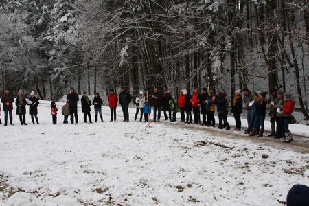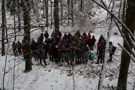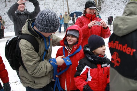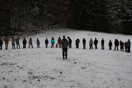 Traditionell am 4. Adventssamstag machten sich in etwa 100 Müllner Pfadfinder, Eltern und Freunde der Gruppe auf nach Seeham um dort die diesjährige Adventwanderung zu bestreiten. Das Wetter spielte dieses Mal perfekt mit: Im "angezuckerten" Wald ging es auf und ab zu einer Wiese mitten im Teufelsgraben. Dort feierten wir mit ein paar Liedern, Beiträgen von den WiWö - sie haben heuer Freundschaftsbänder gebastelt und ein Flötentrio zeigte, was es kann - und natürlich mit den bereits obligaten Verleihungen. Insgesamt sieben WiWö legten ihr Versprechen ab. Zusätzlich gab es bei den WiWö und GuSp einige Spezialabzeichen. Thomas Weber bekam den ersten Kreis der CaEx für seine magische Heimstunde verliehen.