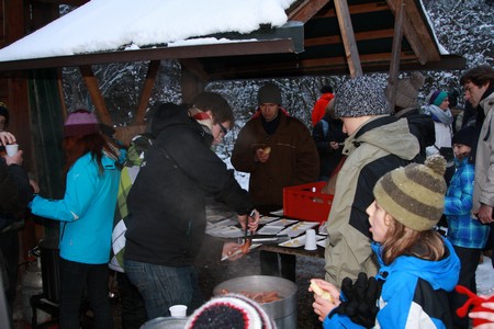 Nach der Feier ging es wieder durch den Wald retour Richtung Ausgangsposition, wo uns Kerschi bereits mit Tee und Würstel empfing.