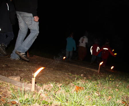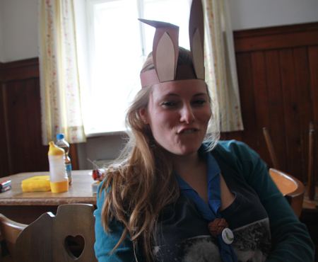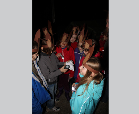 „Grenzstreit zwischen Salzburg und Oberösterreich“ so lautete die Überschrift eines Flugzettels der in manchen Zeitungen, von den Kindern entdeckt wurde. Es stellte sich heraus, dass damit ein Osterhasenstreit gemeint war- anscheinend war nicht ganz klar ob der Zellhof in das Gebiet des Oberösterreichischen oder des Salzburger Osterhasen fällt- und somit bekamen manche Kinder in den vergangenen Jahren gleich zwei Ostereier und andere gar keine. Durch ein von uns mit Hasenohren belauschtes Gespräch zwischen den beiden Hasen wurde klar, dass gewisse Grenzsteine fehlten die Klarheit über die Streitigkeiten bringen sollten. So hilfsbereit wie die WiWö natürlich sind machten wir uns am nächsten Tag auch gleich auf, die verlorengegangenen Steine zu finden. Nach einer langen Suche, die mit an uns gestellte Aufgaben noch erschwert wurde, konnten wir endlich alle Grenzsteine in den Händen halten. Doch bereits in der nächsten Nacht bekamen wir aufgeregten Besuch von einem der Hasen. Der Salzburger Hase und die Grenzsteine waren verschwunden!!! Die mutigen WiWö machten sich gleich noch in der Nacht auf, um den Hasen zu suchen und zum Glück auch zu finden :) So konnten wir die Grenzsteine an magisch leuchtenden Stellen verlegen und den Grenzstreit beheben. Wir hoffen, dass dieses Jahr alle Kinder nun ein Osterei bekommen haben!