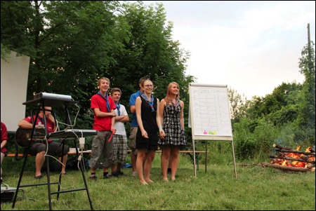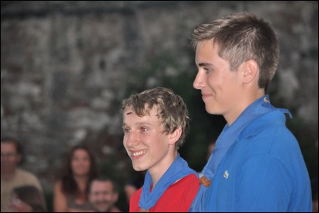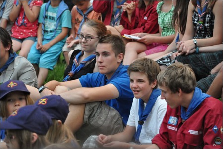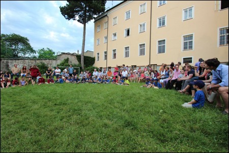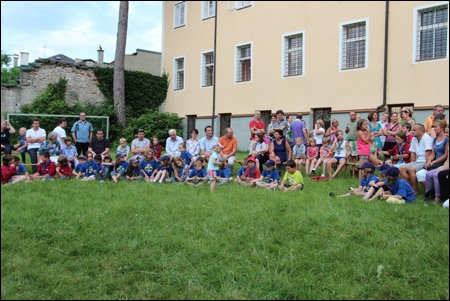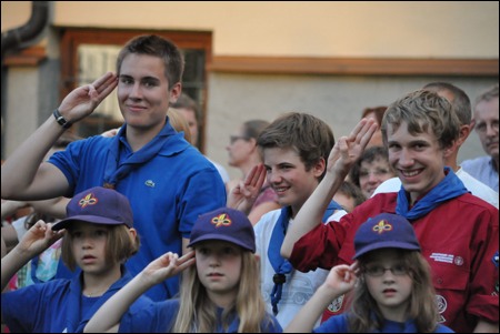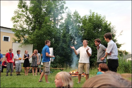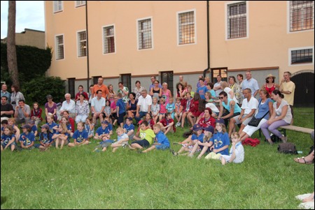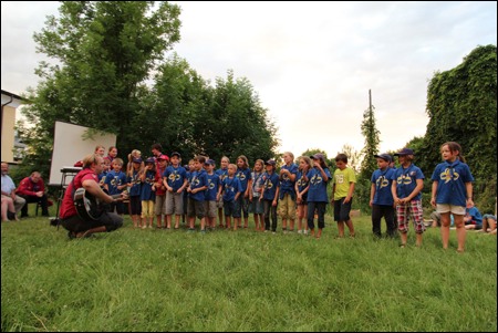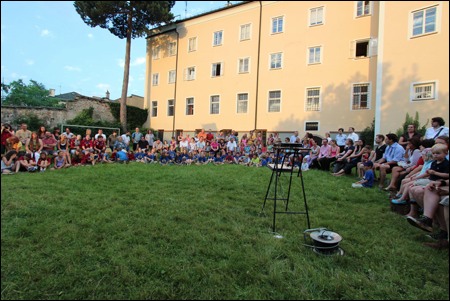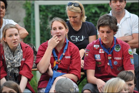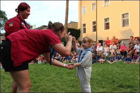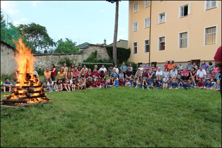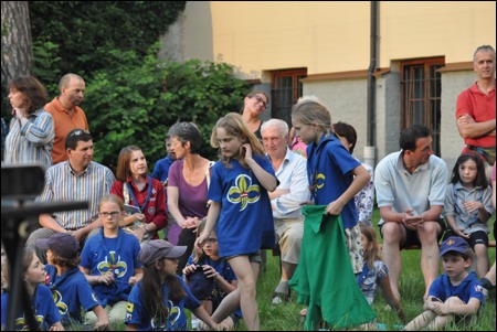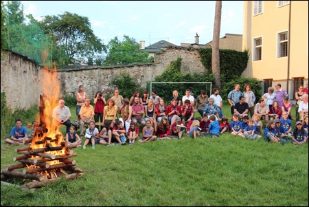 Im Vorjahr meinte es der Wettergott nicht gut mit uns - dafür verwöhnte er uns heuer fast zu viel. Am 29. Juni versammelten sich mehr als 150 Pfadis, Eltern und Freunde bei uns im Hof zum Schlusslagerfeuer. Neben Liedern und Beiträgen der verschiedenen Stufen gab es - wie üblich - auch viele Verleihungen.