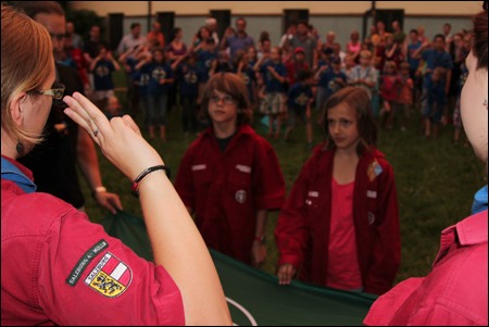 Jara Schaufler bekam ihr Biber-Halstuch, Raphael Spors legte sein Wöflings-Versprechen ab, zusätzlich gab es für Nina Baumgartner und Theresa Gassner das Spezialabzeichen "Kritiker" und Susi Schachner den "Gärtner" verliehen.