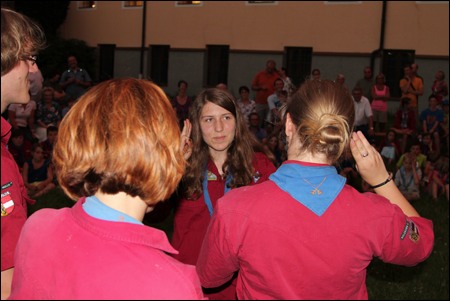 Flora Philipp und Xandi Schachner und unsere WiWö-Leiterin Carmen Heuer legten das Pfadfinderversprechen ab. Besonders herausragend bei den GuSp: Lisa Weber und Anna-Lena Kurz schafften die "2. Klasse" und Anna-Lena steigerte sich noch weiter: Sie bekam noch zwei Spezialabzeichen, die 1. Klasse und auch die höchste Auszeichung der GuSp: den Buschmannsriemen.