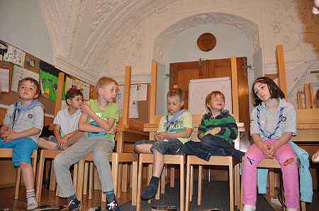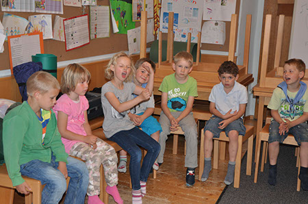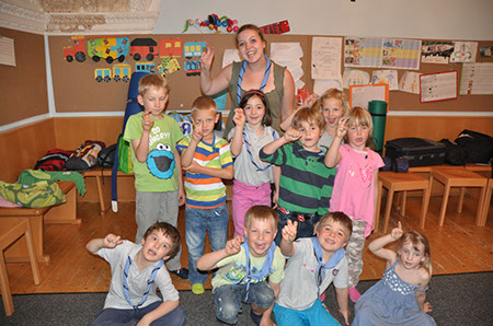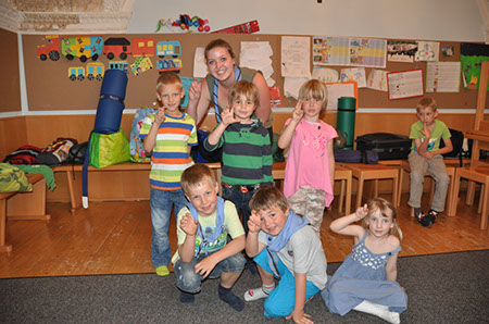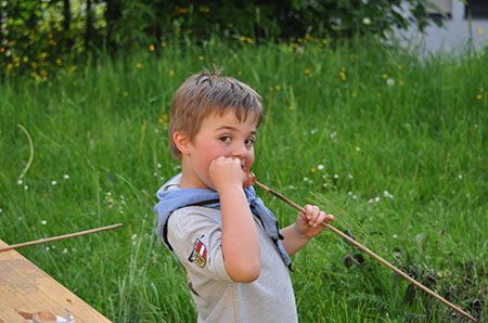 Auch dieses Jahr haben sich wieder einige Biber und Leiterinnen versammelt um die Biberübernachtung 2012 zu erleben. Um genau zu sein war es am Freitag den 11.5.2012 mit 12 Biber und 2 Leiterinnen. Nachdem wir uns alle im Pfadiheim in Mülln eingefunden hatten sind wir auch schon aufgebrochen um das schöne Wetter zu nützen. So spazierten wir in ordentlicher Zweierreihe zum Zauberflötenspielplatz in der Nähe vom Schloss Mirabell. Dort verbrachten wir den Nachmittag mit Rutschen, Schaukeln, Klettern, Sandburgbauen und mit viel, viel Wassertrinken (wir hatten über 30°C). Nach ca. 2 ½ Stunden war es aber auch schon wieder an der Zeit zurück zum Heim zu gehen um unser Lager aufzuschlagen. Angekommen haben die Biber ihre Unterlagsmatten und Schlafsäcke ausgepackt und nach einiger Zeit hatte jeder seinen gemütlichen Schlafplatz für die kommende Nacht eingerichtet. Da nun auch schon Zeit zum Abendessen war begaben wir uns runter in Garten um ein Lagerfeuer aufzubauen um an diesem dann gegrillte Knacker und Semmeln zu essen. Dazu gab es auch Paprika der brav aufgegessen wurden ☺ . Gut gesättigt hatten die Kinder noch Zeit ihrer Energie freien Lauf zu lassen und haben fast bis zur Erschöpfung gespielt. Noch bevor diese eintreten konnte haben wir uns nach oben begeben um uns dort zu waschen, Zähne zu putzen, Pyjama anzuziehen und ab in den Schlafsack zu kriechen. Bei Kinderunterhaltung auf einer großen Leinwand (Der König der Löwen und Kungfu Panda) konnten die Kinder einschlafen und nachdem auch der letzte Biber seine Äuglein geschlossen hatte, haben wir Leiter auch die Chance ergriffen und um ab in die Schlafsäcke zu schlüpfen. Der nächste Tag startete auch schon sehr früh. Nach einem leckerem Frühstück war es an der Zeit, unser Lager abzubauen. Nachdem jeder Schlafsack und jede Isomatte und auch der letzte Socke in der Tasche verstaut war bekamen wir tierischen Besuch. 2 Hunde mit ihren Besitzerinnen kamen um den Bibern einiges über Hunde, ihre Pflege, Verhalten, Essen und die Möglichkeiten für ihren Einsatz (Rettungshund etc.) zu erzählen. Die Kinder durften die Hunde streicheln, bürsten und lernten viel Nützliches über den besten Freund des Menschen. Nach einem Quiz mit Fotobelohnung verließen uns die Hunde und Ihre Frauchen auch schon wieder. An dieser Stelle möchte ich gleich Frau Nannerl Wenger und Frau Maria Eder vom Verein Kibello mit Ihren Hunden Sternchen und Hexe für ihren tollen Besuch danken. Danach waren wir auch schon fast beim Ende angelangt, doch bevor wir die Biber wieder nach Hause entließen, haben Adrian, Fabian, Talisa, Michi, Jara und Valentin den Button für eine erfolgreich miterlebte Biberübernachtung verliehen bekommen. Und so endete eine spannende Biberübernachtung 2012.