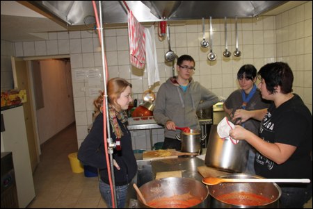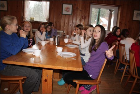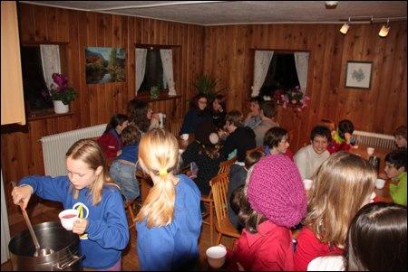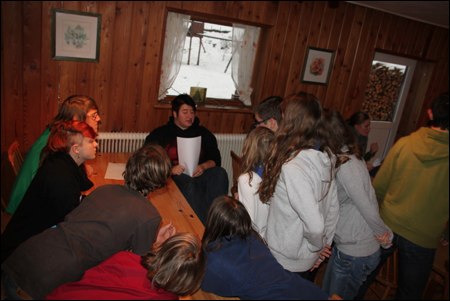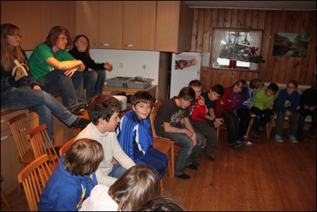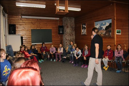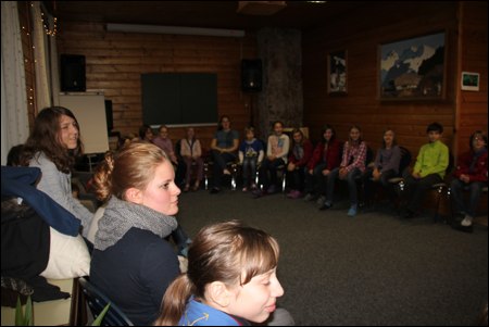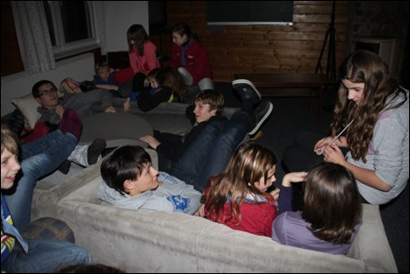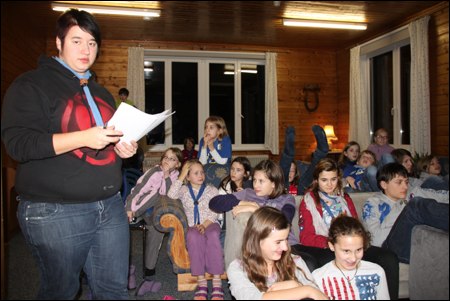 Nach einem ausgiebigen Frühstück am Samstagmorgen ging es los mit einem Stationenlauf. Man musste zum Beispiel einen Parcours mit einem Schlitten überwinden, knifflige Geschmackssorten erraten, sich etwas merken, gegenseitig vertrauen oder seine Geschicklichkeit beim Teesackerlweitwerfen beweisen. Ziemlich hungrig ging es danach ab zum Mittagessen. Dann wurde ausgeruht bevor es zum großen Nachmittagsprogramm überging: „0 auf 100“. Ein Spiel wo manche sehr der Ehrgeiz packte und man im Team gut zusammenarbeiten musste. Eine Mischung aus Schnelligkeit und Wissen. Manche scheiterten bei der 100. Frage:“ Welcher Pass ist in jedem Land gültig?“ Viele kreative Antworten kamen dabei raus. Im Endeffekt stimmte aber leider nur der Kompass. Der Sieger stand somit fest aber trotzdem gab kein Team auf und schaffte es am Ende auch bis ans Ziel. Nach einem actionreichem Nachmittag gab es noch eine Siegerehrung und einen gemütlichen Kino-Abend: Passend zur Winterzeit stand der Film „Happy Feet“ am Programm. So ließen wir das Lager noch ruhig ausklingen bevor wieder alle müde in ihr Bett fielen.