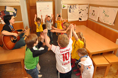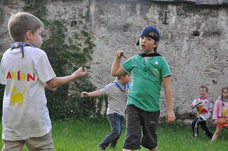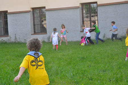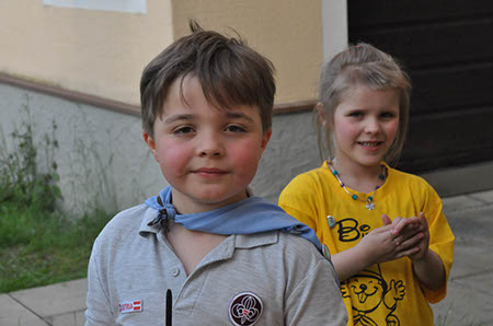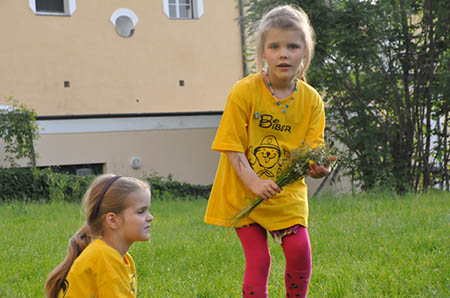 Nach einer relativ ruhigen Nacht ging es in der Früh weiter mit zusammenpacken und frühstücken. Da wir Biber gerne singen, packte Vroni ihre Gitarre aus und wir probten schon ein wenig für ein bald bevorstehendes Pfadi-Ereignis. Bei strahlend schönem Wetter ging es dann wieder in den Hof wo wir Fußball spielten. Kurz vor dem Ende gab es traditionsgemäß Verleihungen: Selina, Maria, Anna, Florian, Kilian, Fabian und Leopold erhielten den Button für eine erfolgreich mitgemachte Biberübernachtung. Schon war es auch wieder an der Zeit nach Hause zu gehen und die Kinder wurden von den Eltern abgeholt.