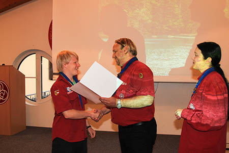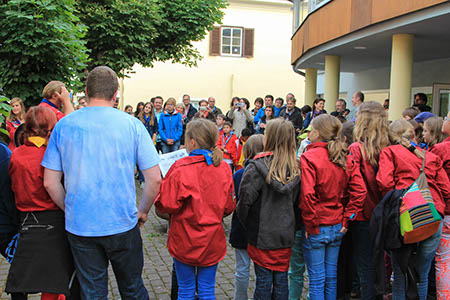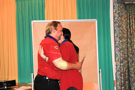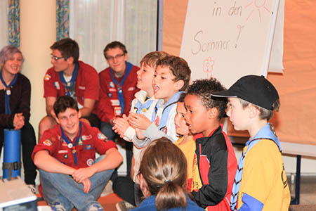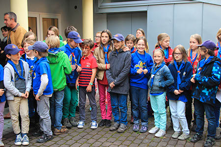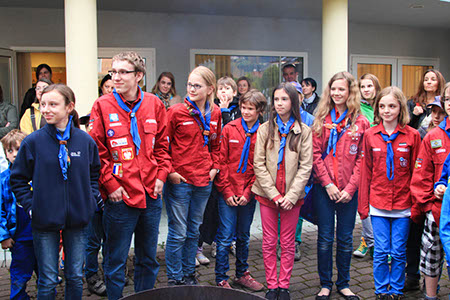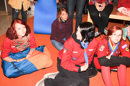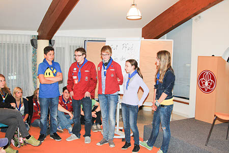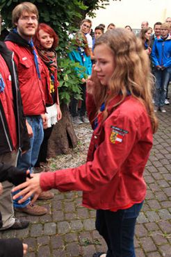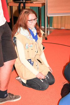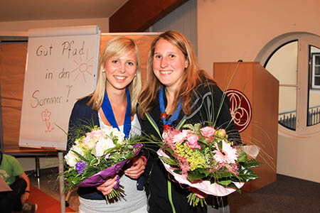 Anschließend ging es hinauf in den großen Saal des Landesverbandes wo wir gemeinsam die Beiträge der Stufen bestaunten oder beraunten. Raphi bekam seinen Meister verliehen, Astrid und Carmen wurde zum fertigen "Dipl-Päd" gratuliert und bevor wir uns einen Jahresrückblick in Form einer Fotoshow anschauten, hieß es leider noch Abschied von Vroni und Julia nehmen. Herzlichen Dank an dieser Stelle noch einmal an die beiden für ihren Einsatz als Leiterinnen in unserer Gruppe.