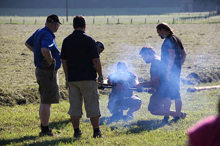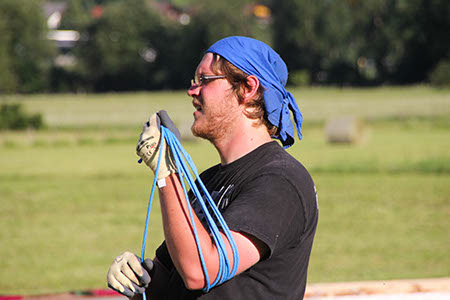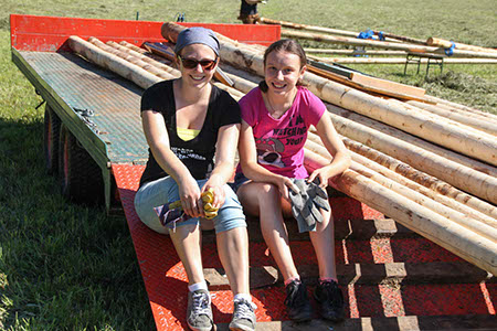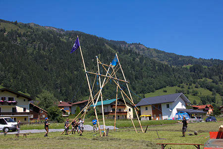 Zeitig in der Früh starteten 13 Müllner-Pfadfinder, Freunde, Eltern und Leiter das "kleine Großprojekt": den Aufbau des Lagertors für unser diesjähriges Landeslager Wurzl'14.