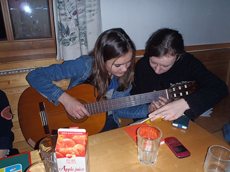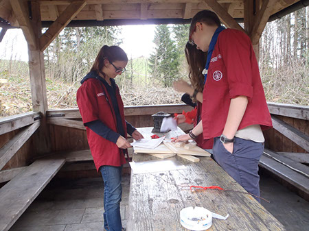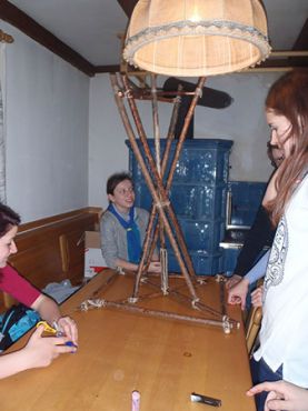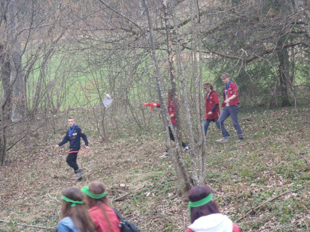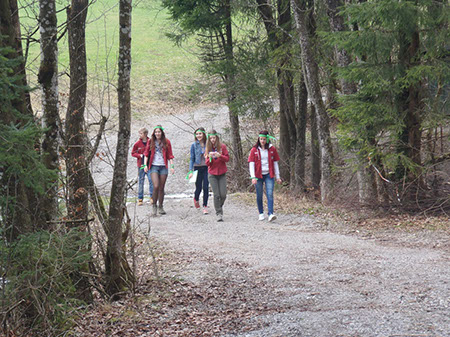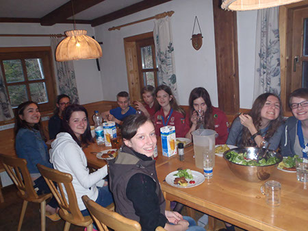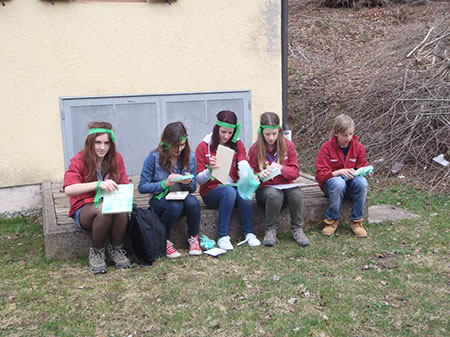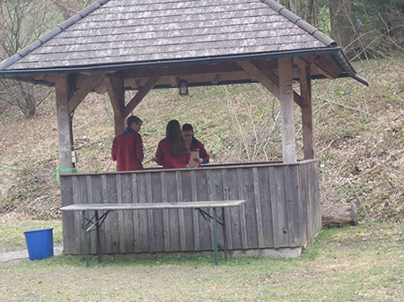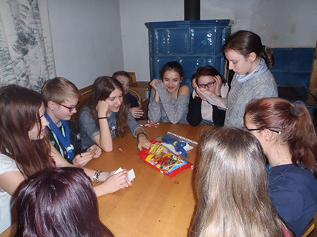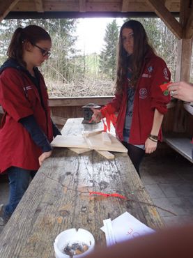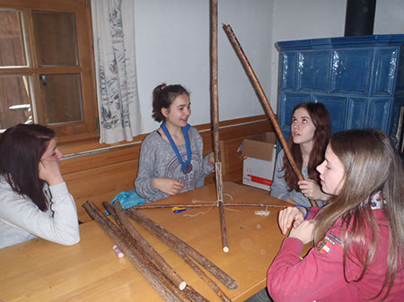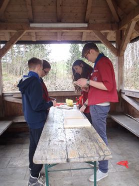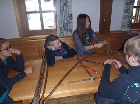 Unser "sommerliches" Lager verwandelte sich über Nacht zu einem "Winterlager" im Frühling. Da uns der Tag mit einem Schneesturm begrüßte, haben wir das Prgramm auf später verschoben und stattdessen nach Frühstück und etwas Aufräumen Werwolf gespielt.