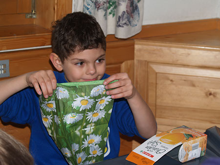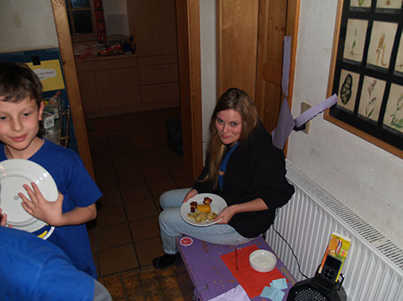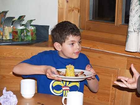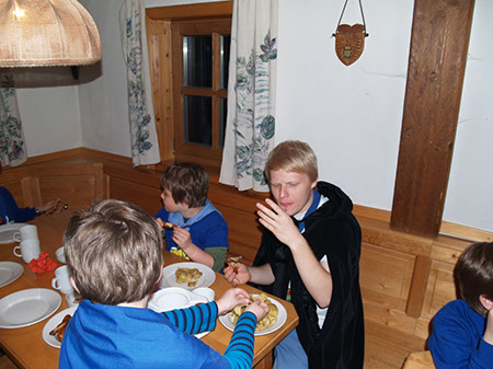 In den nächsten Tag starteten wir mit einem typisch vorarlbergerischen Lied um den Dialekt verstehen zu lernen. Außerdem backten wir am Vormittag noch ein steirisches Kürbiskernbrot. Nach superleckeren Kasnocken zum Mittagessen, schickte uns Pfadiman nach draußen, und wir mussten wie ein Lindwurm, das Wahrzeichen von Kärnten, durch einen Hindernisparcour. Danach wurde uns die Sage der Salzburger Stierwascher vorgelesen und bei einem 1,2 oder 3 sollten wir unser Wissen über Hygiene unter Beweis stellen. Zum Ausgleich wurde uns das Bundesland Niederösterreich nähergebracht und wir gingen auf eine Traumreise, wegen den vielen Klöstern. Zum kaiserlichen Abschluss des Lagers kam Pfadiman nochmal vorbei. Wir konnten nun alle Fragen über Österreich beantworten. Er war sehr stolz. Als Belohnung übergab er jedem von uns eine Urkunde und schenkte uns Zutaten für ein kaiserliches Dinner, ganz im Zeichen der Hauptstadt von Österreich:Wien. Zum Abschluss gab es noch einen lustigen Filmeabend.