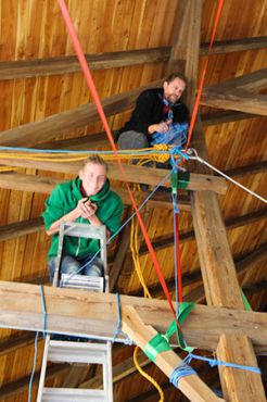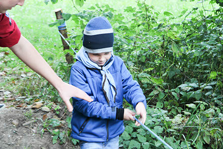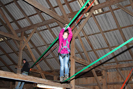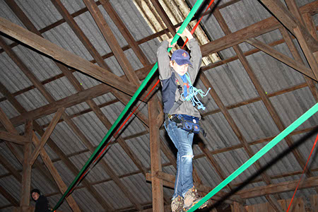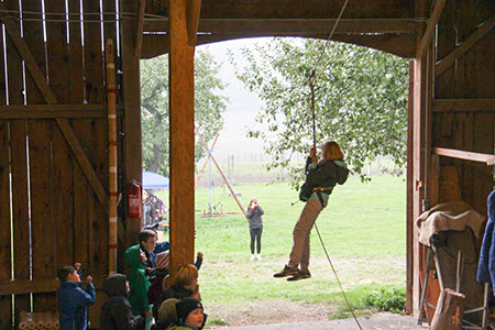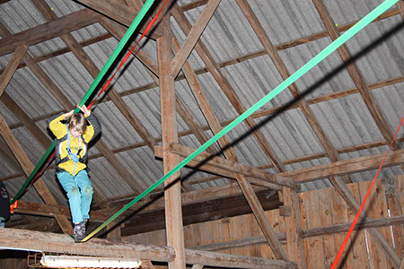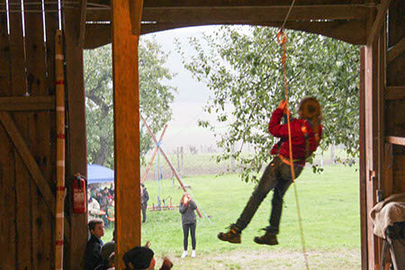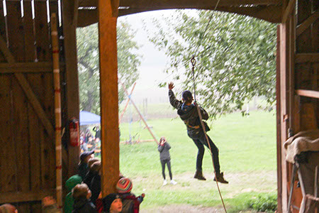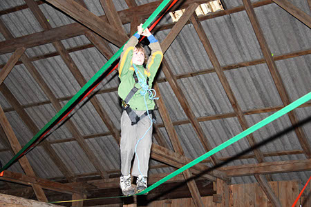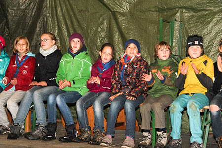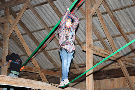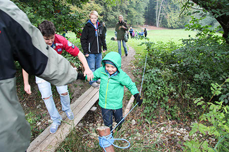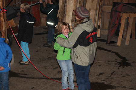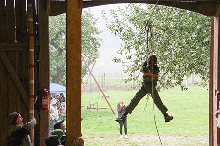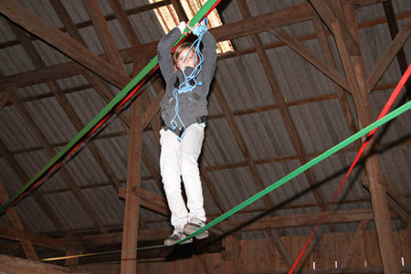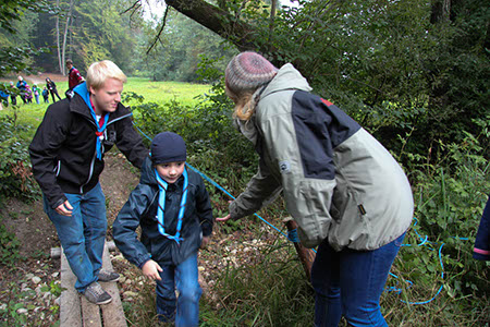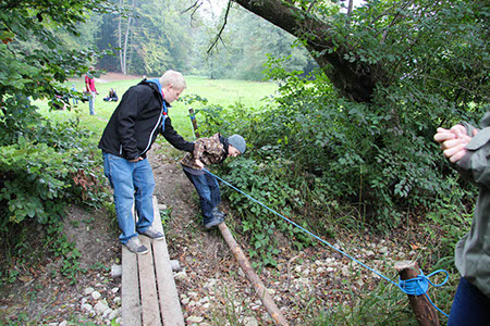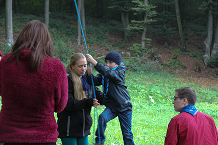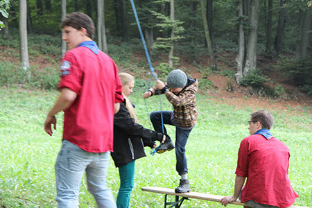 Natürlich konnten, mussten und vor allem durften auch die Bewerber für die übrigen Stufen Gefährliches und Abenteuerliches wagen. Die zu den Bibern wollten, krochen durch einen engen dunklen Tunnel, legten ein Stück äußerst schwungvoll zurück und balancierten auf der Slackline.