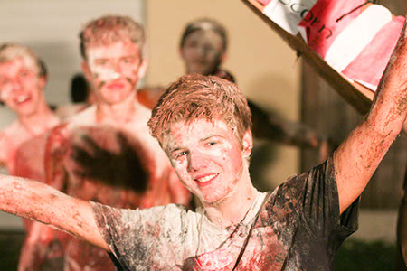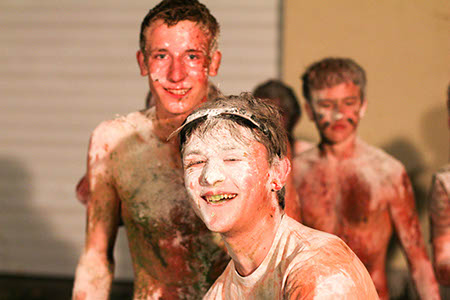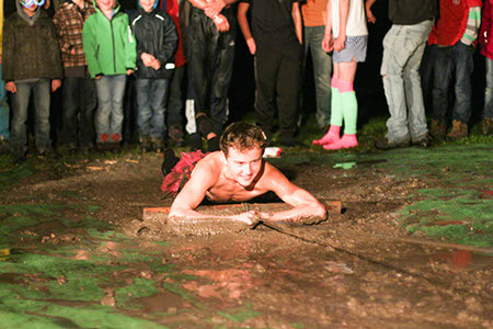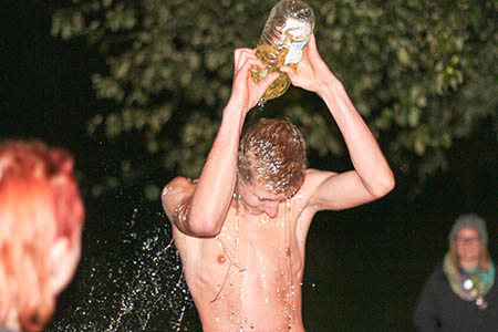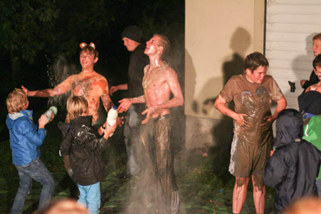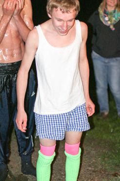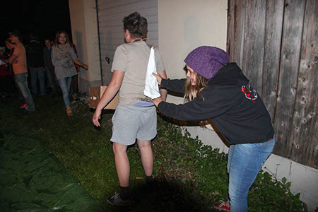 Wasser von oben, Wasser von unten, Wasser von der Seite: Ersteres durften wir alle erleben auf unserem traditionellen Überstellungslager am Lipplgut. Aber es hielt sich in Grenzen und der Regen verdarb uns keineswegs die Laune. Das volle Wasserprogramm bekamen nur einige Auserwählte. Richtig! Die angehenden RaRo. Diesmal stand das unter dem Zeichen „Zirkus“. Das Outfit der Künstler und vor allem der (männlichen) Künstlerinnen war entzückend, die weltneue Schlammtrapeznummer wird wohl in Zukunft in keinem Artistikprogramm mehr fehlen. Bei der anschließenden Desinfektion der leider etwas kontaminierten Künstler gab es zwar technische Probleme mit dem Reinigungsgerät. Das behandelnde medizinische Personal brachte aber die nötige Geduld auf, um den gewünschten Effekt zu erreichen. Am Rande: Wir hatten ein Geburtstagskind (eher schon ein älteres) unter uns. Und so wie Obelix seinerzeit eine eigene Römerarmee zum Verprügeln geschenkt bekam, durfte unser Jubilar seinen eigenen Patienten ganz allein behandeln.