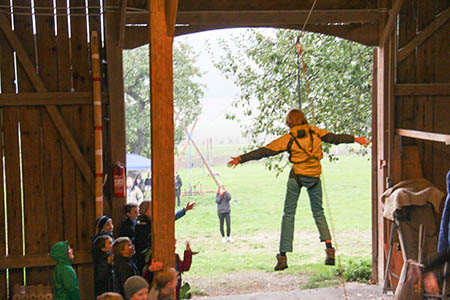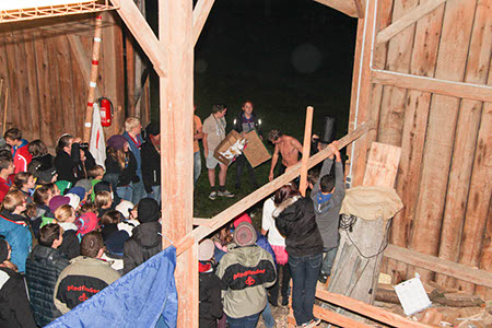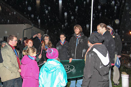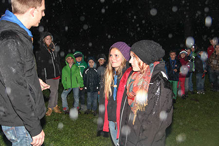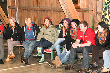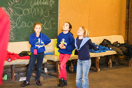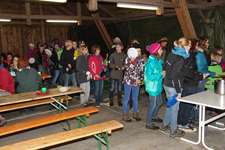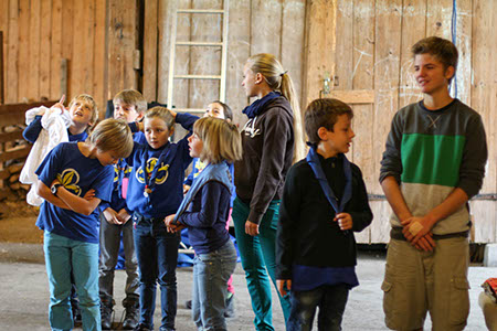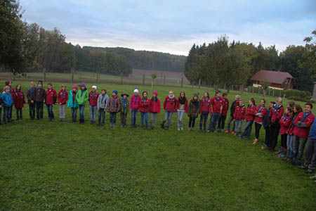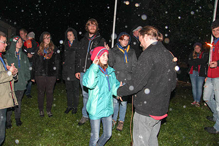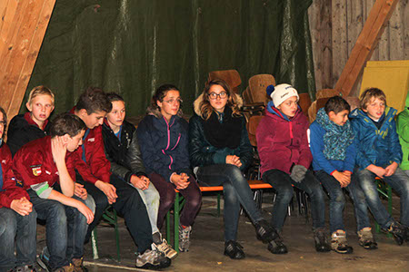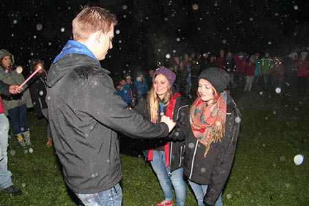 Neben diesen gefahrvollen Bewährungsproben gab es natürlich viel Raum zum Kennenlernen der neuen Stufen, stimmungsvolle Versprechen (Leonie Röthler, Theresa Antosch) und Wacheverleihungen (Silvie, Lisa) bei Fackelschein und eine fast schon professionelle Gesangsrunde in der oberen Tenne. Das eigentlich dafür vorgesehene Lagerfeuer fiel leider buchstäblich ins Wasser.