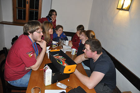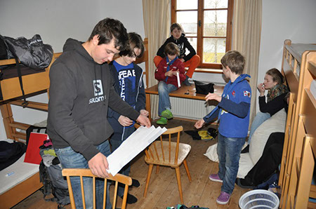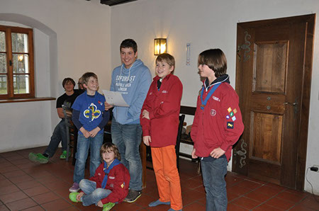 Unser diesjähriges Winterlager führte uns in die alten Gemäuer des Jungscharheimes Berndorf. Natürlich stand wie bei jedem Winterlager Spiel und Spaß im Vordergrund. So ging es nach dem Ankommen und Zimmerbeziehen gleich auf in den nächsten Wald um eine Runde Wimpelstehlen zu spielen. Nach einer großzügigen Portion Kasnocken, von der (da einige Kinder scheinbar auf Diät sind) viel übrig blieb, vergnügten wir uns noch bis zum Schlafen gehen bei einer langen Partie 0 auf 100 und einem gemeinsamen Spieleabend.