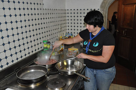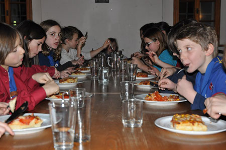 Der nächste Tag stand ganz im Zeichen des Wettbewerbs, doch neben einem Brückenbauwettbewerb und Pfadfinder 1, 2 oder 3 fand sich auch hier noch Platz für ein ungezwungenes Fußballspiel. Zum Abendessen gab es selbstgemachte Pizza, bei der die Leiter viel Spaß bei der Vorbereitung hatten. Leider gab es Beschwerden, dass die Pizza nicht rund war, der Filmabend machte dieses Manko aber zum Glück wieder Wett.