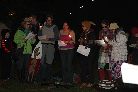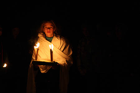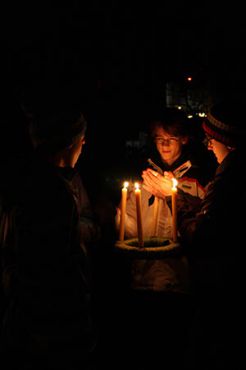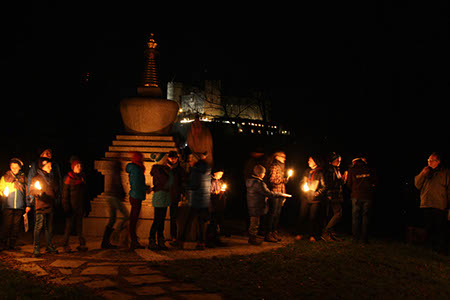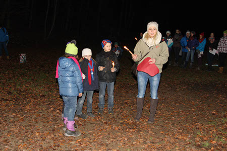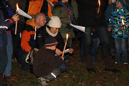 Der Weg führte uns weiter zur, erst vor ein paar Jahren, errichteten Stupa in der Nähe der Richterhöhe, dort stellten die GuSp mit ihrem Beitrag die Hexe Belfana und die italienischen Weihnachtsbräuche vor, die CaEx das schwedische Lichtfest mit der Heiligen Lucia.
