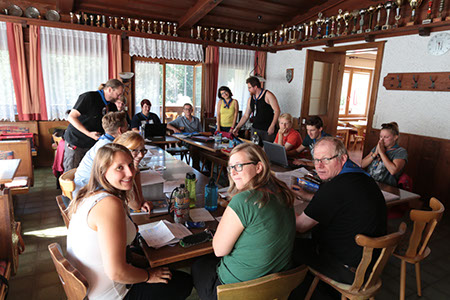 Am Samstag, den 27. August trafen sich die Leiter zur diesjährigen Klausur. Um möglichst ungestört und produktiv zu sein, fuhren wir erneut da hin, so sich Fuchs und Hase "Gute Nacht" sagen: ins Jugendhotel Lammertalerhof in der Gemeinde St. Martin am Tennengebirge. 18 top-motivierte Leiter diskutierten, suchten (und fanden) Ideen für das kommende Jahr und legten einen "Fahrplan" für die zukünftigen Herausforderungen fest. Bis Sonntag Mittag war alles besprochen, die Aufgaben verteilt und wir sind startklar für das Pfadi-Jahr 2015/2016. Besonders freut es uns, dass Nadja, Jonathan und Marcel ab sofort als Assistenten der Gruppenleitung Kerschi und mich in der Gruppenleitung unterstützen.