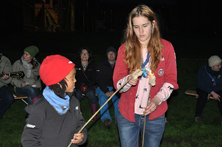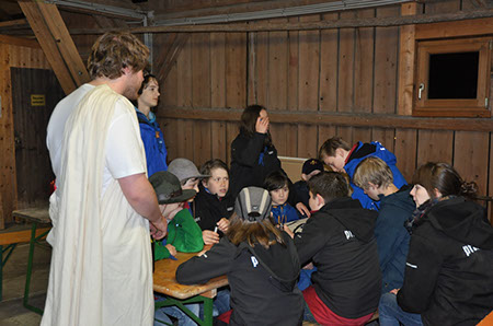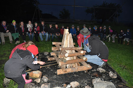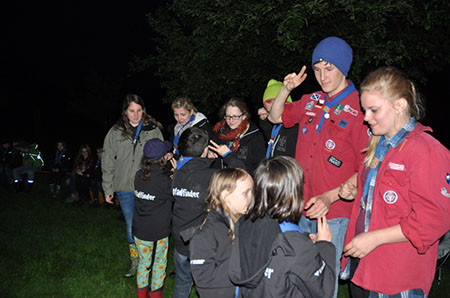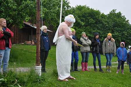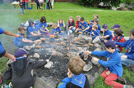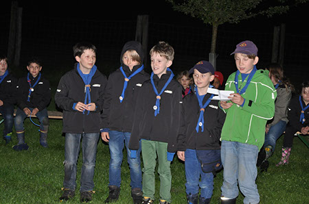 Nun, da sich die etwas altmodischen Griechen wieder auf ihren Olymp verkrochen hatten, kehrte der normale Lageralltag aufs Lipplgut ein, und da es endlich nicht mehr regnete wurde das Wochenende natürlich auch mit einem traditionellen Lagerfeuer beschlossen. Einige Kinder wurden bei dieser Gelegenheit auch ausgezeichnet: Von den WiWö erhielten Valentina, Gregor, Isabel, Thomas, Selina, Theo, Valentina und Kitty ihr Halstuch; und bei den GuSp legte Vicky ihr Versprechen ab. Auch der Fleiß ein paar weiterer Wichtel und Wölflinge wurde anerkannt: Elisabetta, Jara, Judith und Adrian hatten den ersten Stern erlangt, und Samuel sogar den zweiten. Samuel und Emilia bekamen sogar Spezialabzeichen.