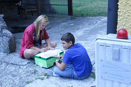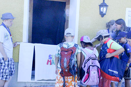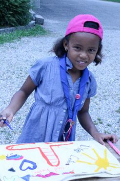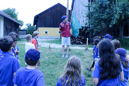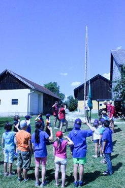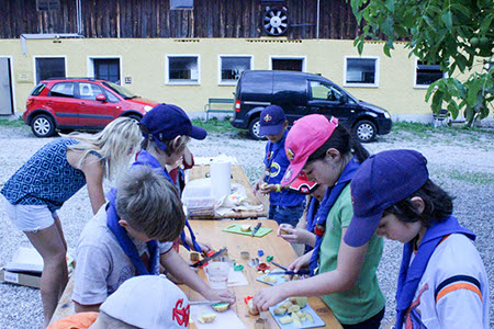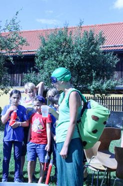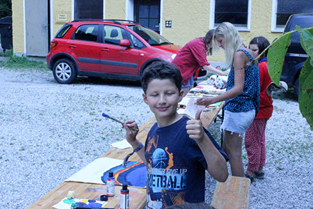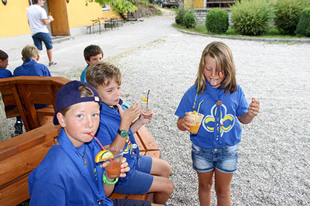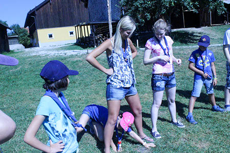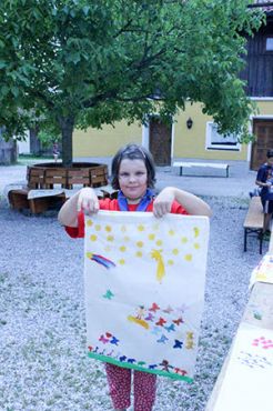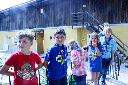 Heute war ich sehr aufgeregt und habe mich gefreut! Es geht aufs WiWö-Sommerlager! Juhuuuu! Zuerst gab es Kindercocktails, die schmeckten sehr lecker. Wir spielten Fußball mit Marcel und Raphi und Merkball mit Verena und Carmen. Dann war da plötzlich ein freches Huhn. Weil es schwarz war, nannten wir es Blacky. Am Abend bastelten wir Briefkästen. Dann haben uns die Leiter ins Bett geschickt. Im Zimmer geht kein Licht und das Wasser schmeckt komisch.
