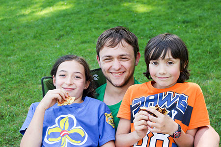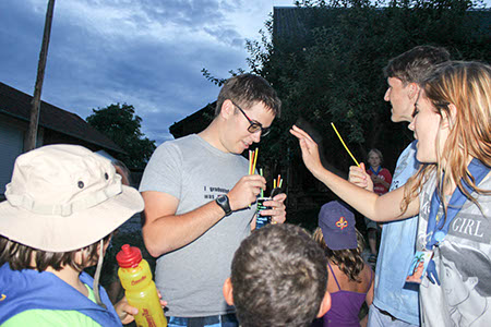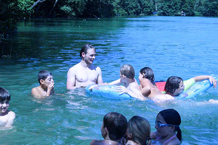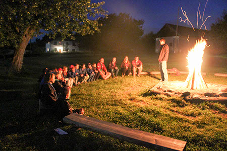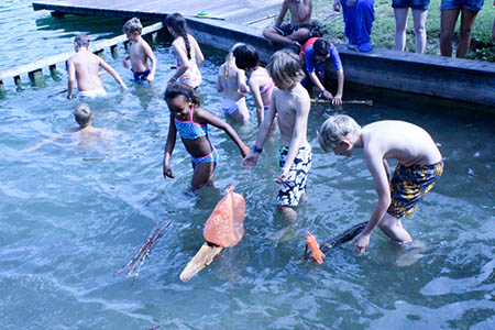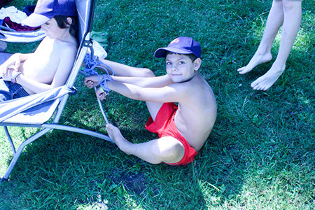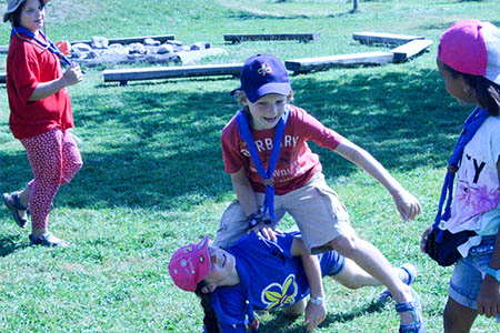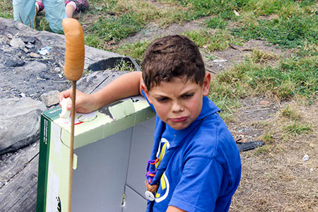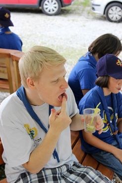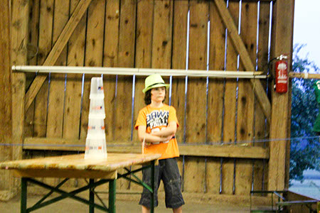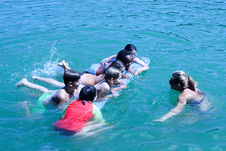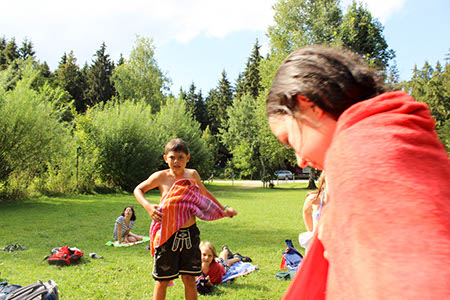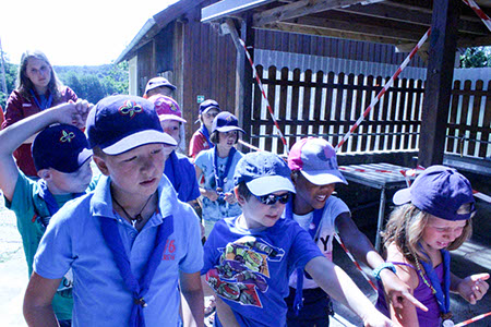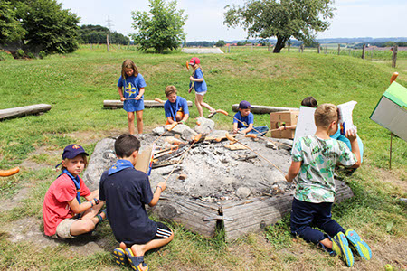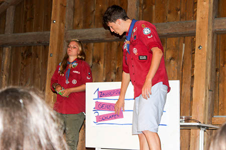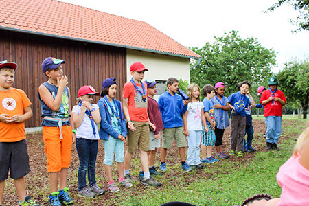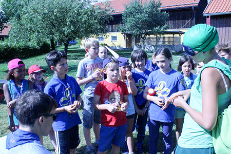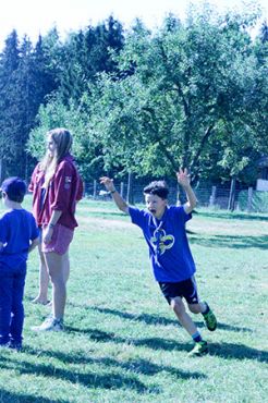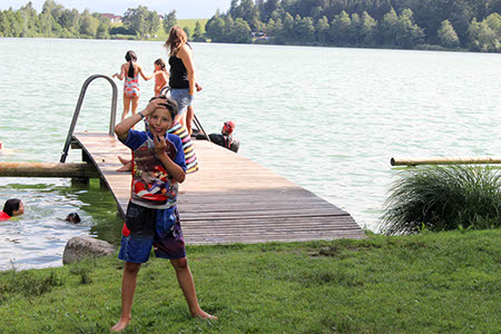 Peach war so dankbar, dass sie uns die Bilderrahmen schenkte. Heute waren wir ganz lange am See baden, picknicken und Spezialabzeichen fertig machen. Dann war’s endlich so weit: der Höhepunkt des Lagers: das Lagerfeuern. Es wurden ganz viele Spezialabzeichen verliehen. Und sogar 2. Sterne. Samuel war der fleißigste, er bekam den Tausendsassa.