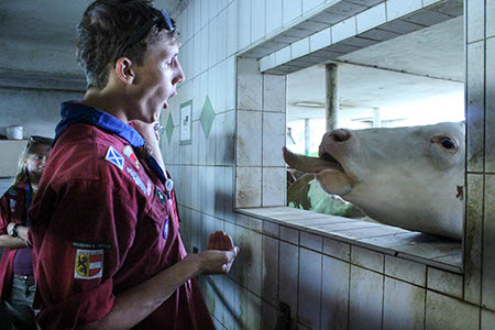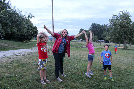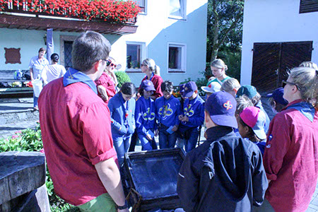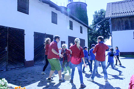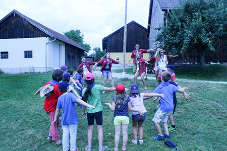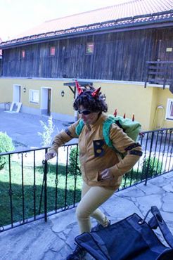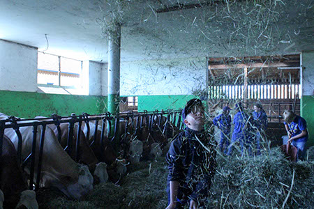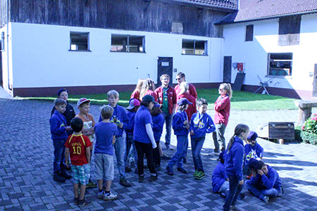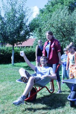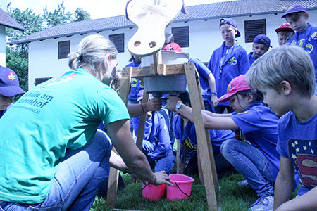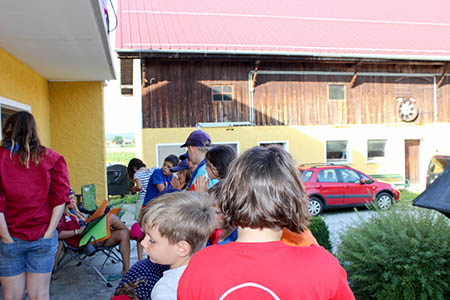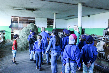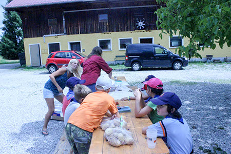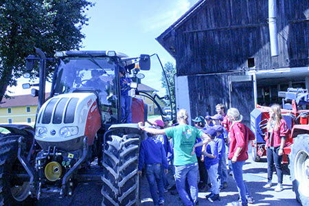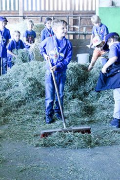 Ich freute mich schon das ganze Lager auf den Bauernhof. Da erlebe ich immer besonders viel: Babykatzen streicheln, Kälber streicheln, Kühe füttern und melken, das Melkduell und das beste war der Traktor. Wir durften alle hinaufklettern und auf dem Fahrersessel sitzen. Danach stanken wir ganz ordentlich. Am Lipplgut planten die älteren Kinder eine Schnitzjagd für die Jüngeren. Die verkleideten sich sogar. Das war ziemlich lustig.