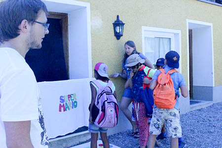 Ein Tag ohne Uhr ist ein bisschen kompliziert. Wann gibt’s Frühstück? Natürlich, dann wann alle Kids wach sind. Wir bemalten und stempelten einen Schmutzwäschesack, der ist ganz praktisch. Ich habe eh keinen mit. Wir gingen baden. Am Abend Spielten wir ein besonders lustiges Spiel. Wir gewannen dabei 35 Gummibären. Die Leiter haben aber leider gewonnen. In der Nacht wurden wir ganz unerwartet von Peach geweckt. Wir mussten Mario befreien. Das war so gruselig. Wir haben es aber geschafft.
